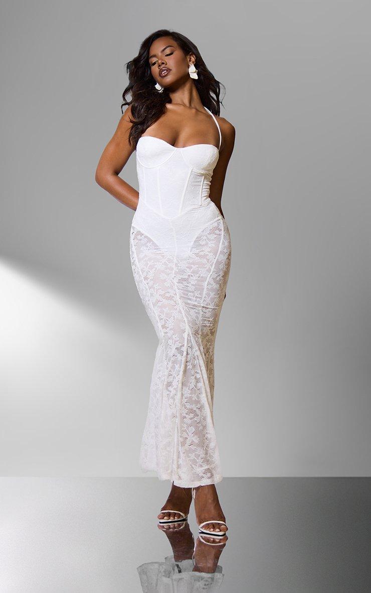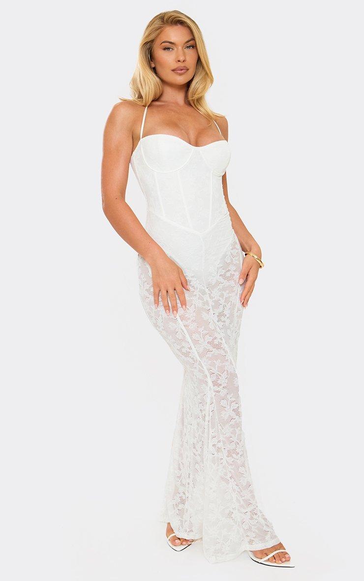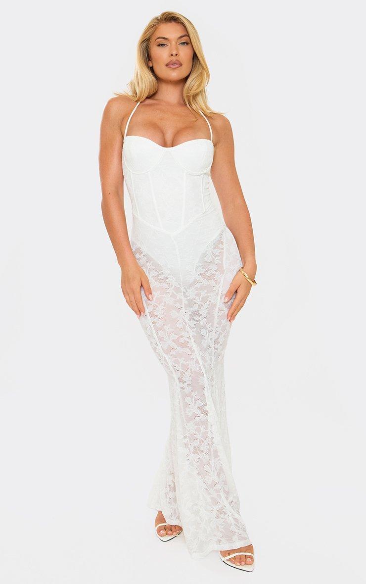 Halterneck Corset Maxi Dress In White Lace