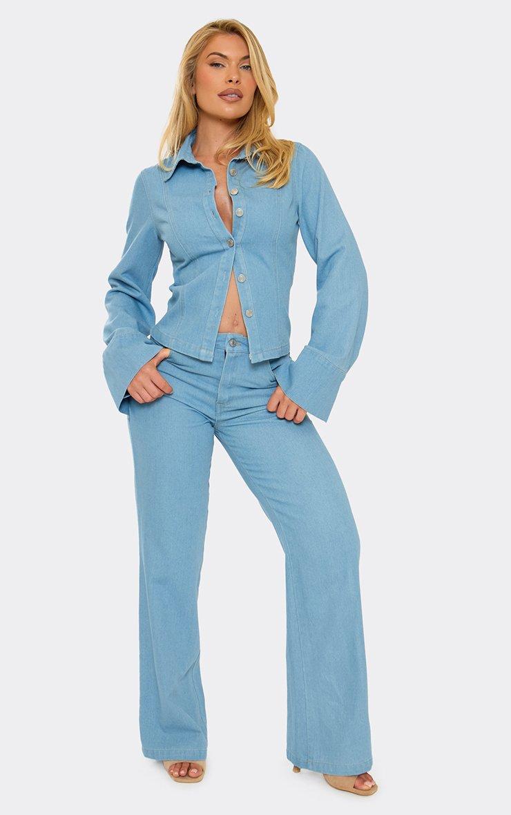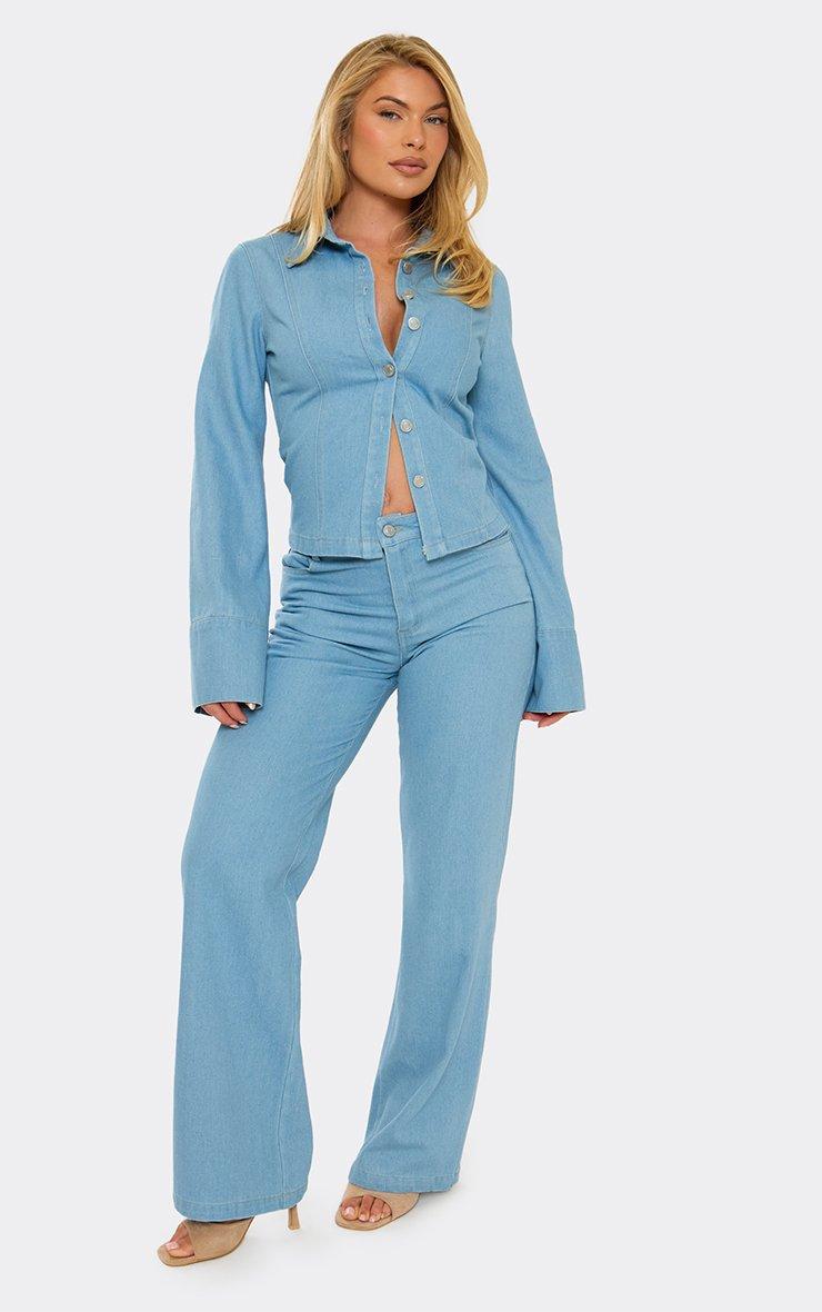 Crafted in timeless blue denim with statement seam detailing, these mid rise flared jeans serve up that chic retro vibe while keeping your look fresh and on-trend.