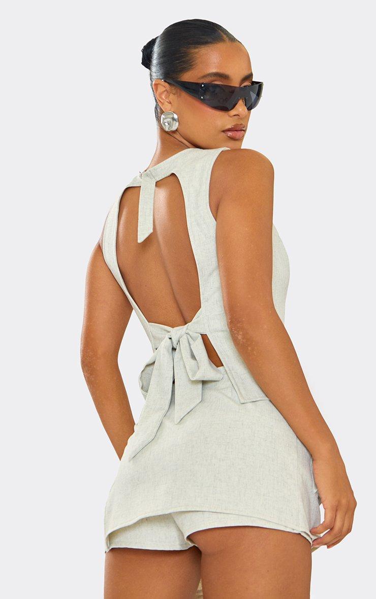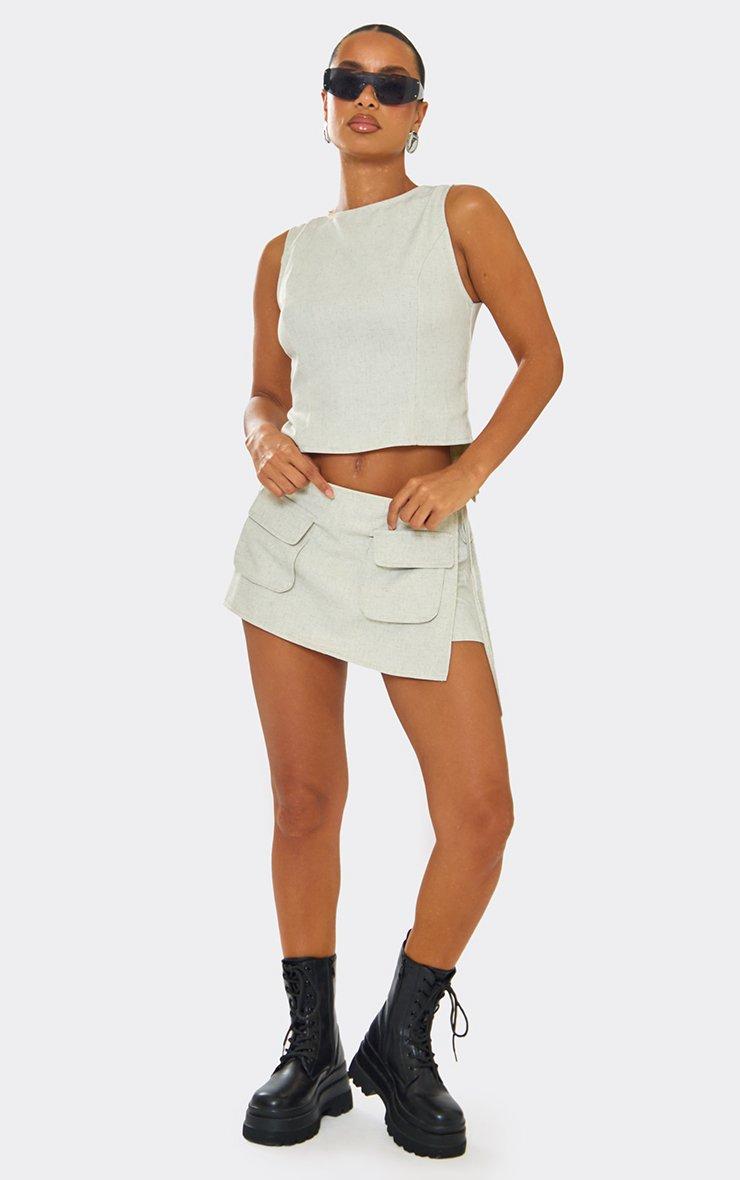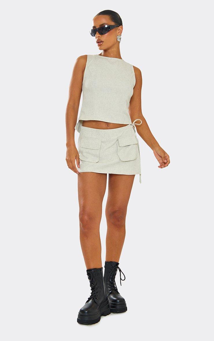Side Tie Pocket Detail Cargo Mini Skort In Stone