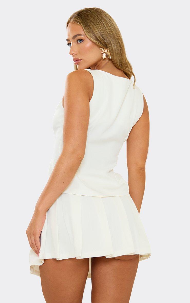 Mid Rise Pleated Detail Mini Skirt In Cream