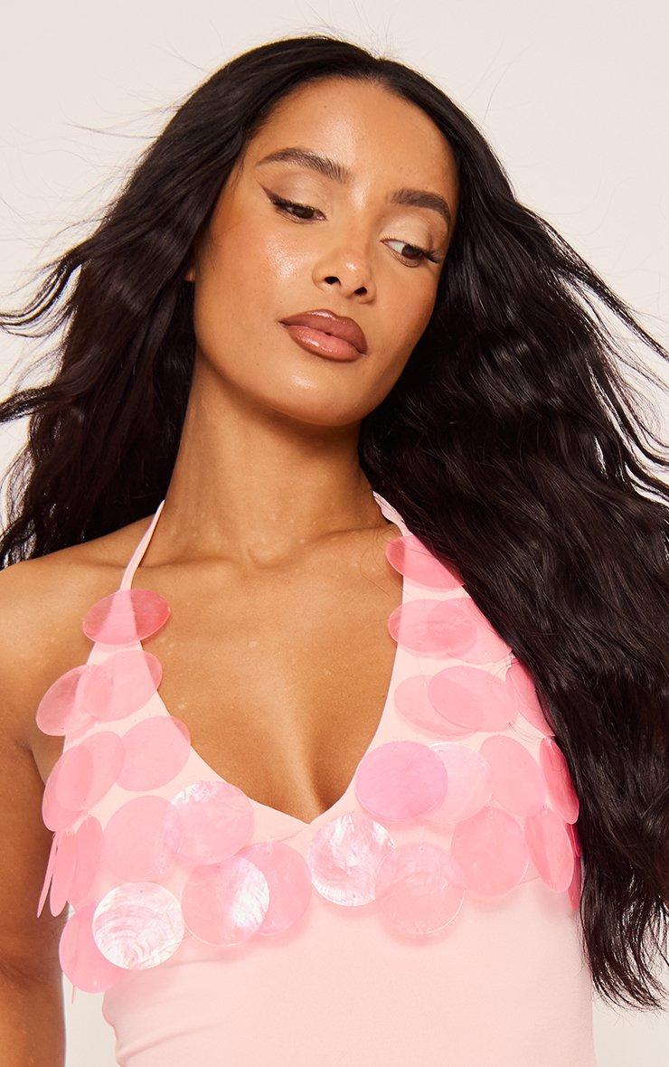Halterneck Disc Sequin Bust Detail Top In Pink