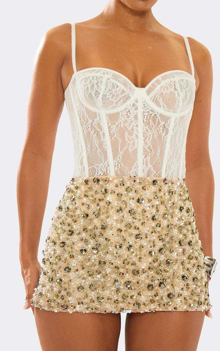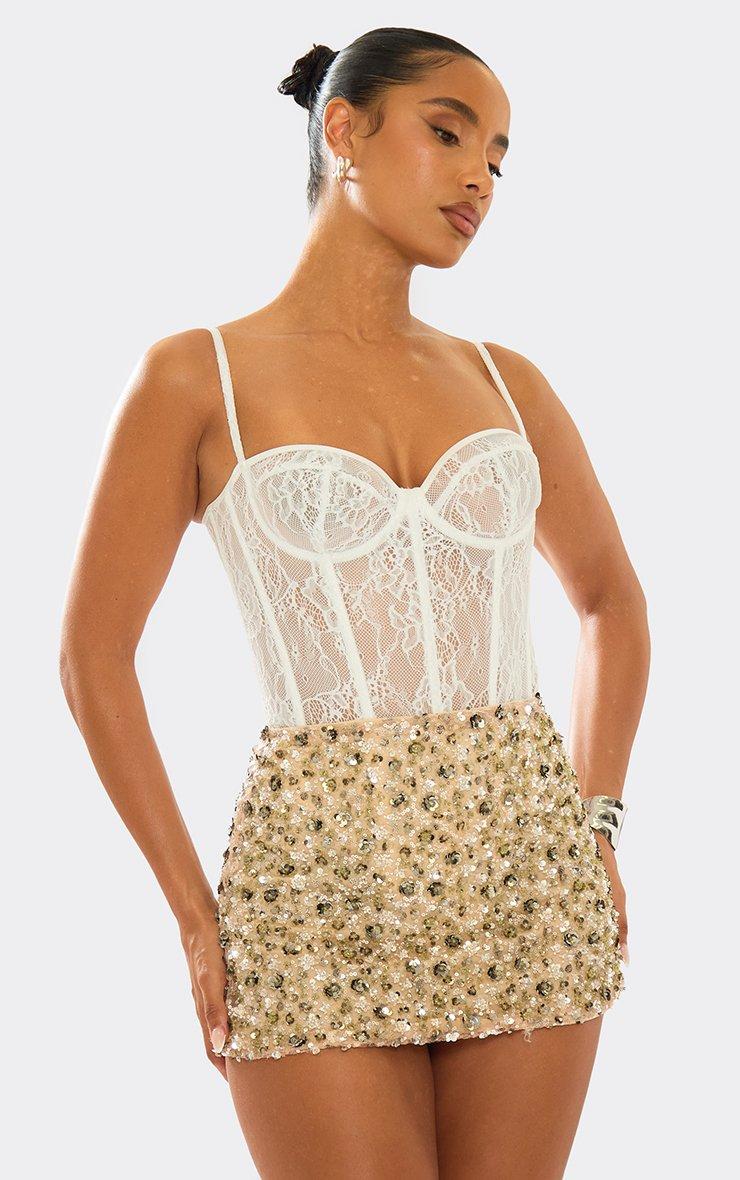 Date night ready, doll. Featuring a white lace material with cupped structured corset detailing, this bodysuit is giving bold, chic vibes for your statement wardrobe.