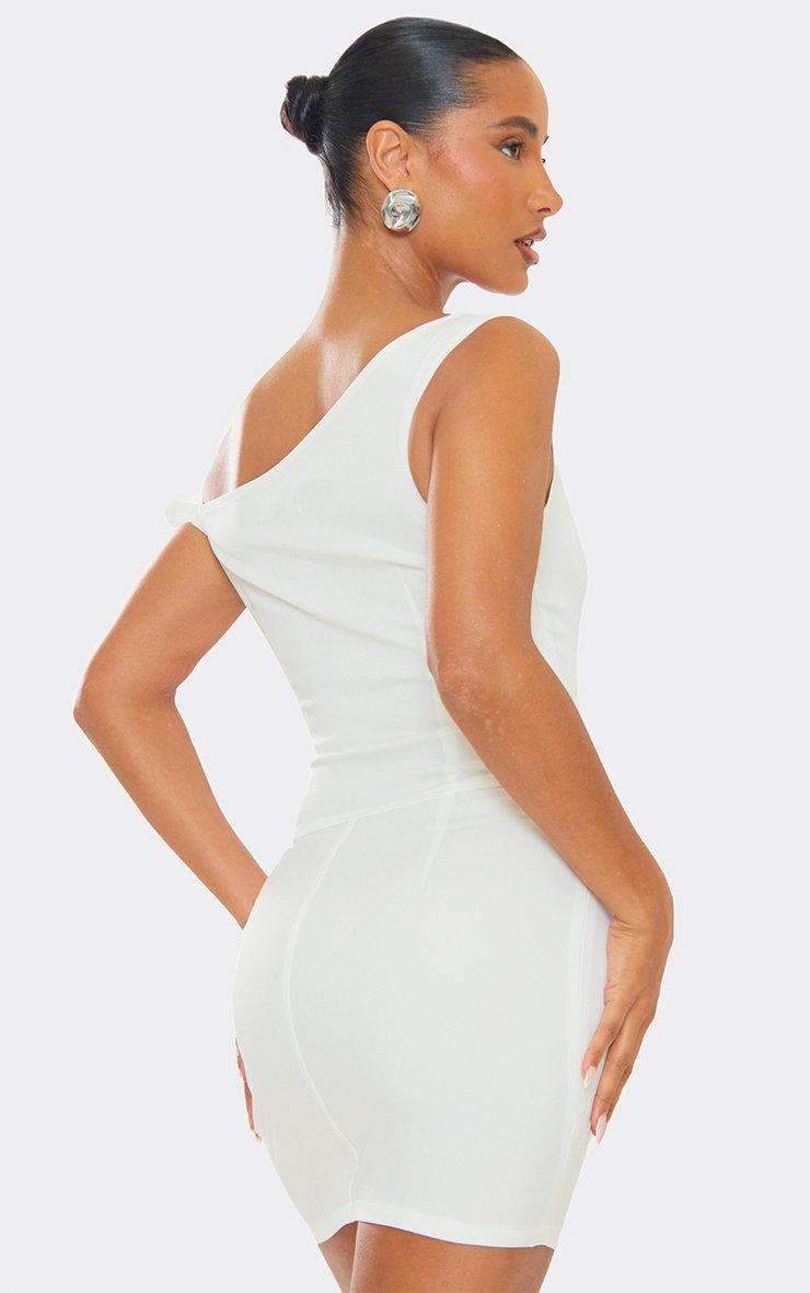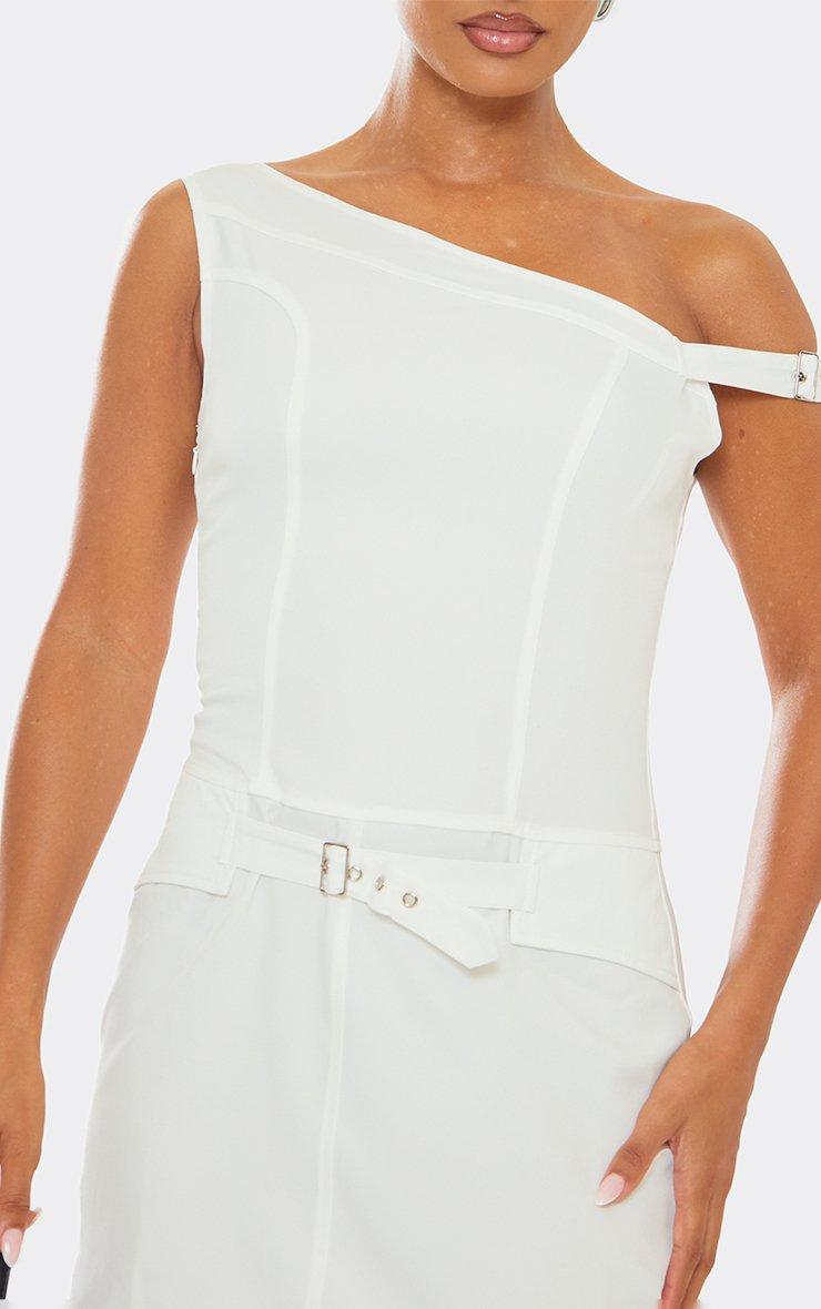 One Shoulder Belt Detail Tailored Mini Dress In White