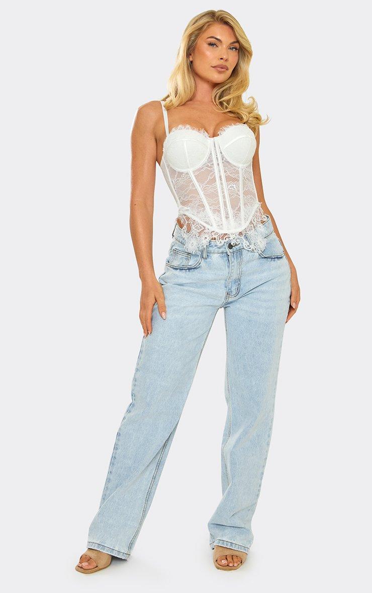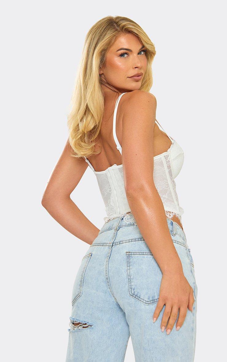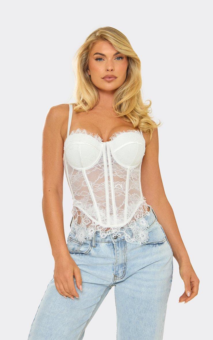 Strappy Structured Underwire Detail Corset Top In White Lace