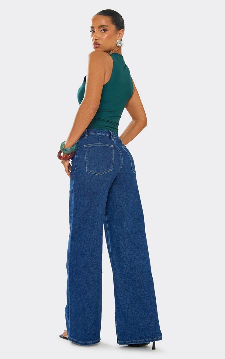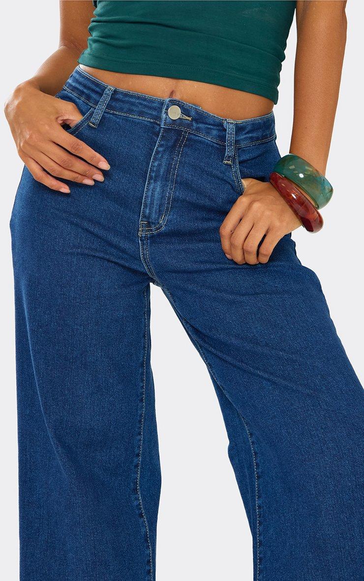 Need some solid staples for your bottomless brunch outfit ideas? Throw these wide-leg stretch jeans into the mix; they can be styled with literally anything. Effortlessly cool, these wide-leg jeans are designed with a mid, work-with-everything, blue hue and sleek detailing that adds edge to any fit. Made from stretchy cotton denim, these blue jeans feature a figure-flattering, mid-rise fit and a wide-leg style that's tight and loose in all the right places. Wear these wide-leg stretch jeans with a corset top and clear Perspex heels for the ultimate casual day drinks outfit that's not so casual. You can see why we're so obsessed with these jeans . Key Features Mid-Blue Denim Wide-Leg Style Mid-Rise/Regular Fit Stretchy Cotton