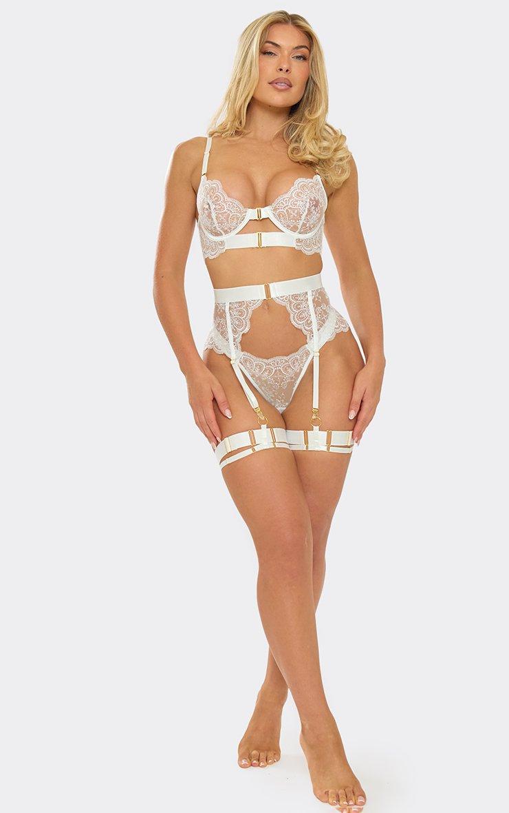 Bridal vibes but make it bold, doll. Featuring a white floral lace material with scallop detailing, this 3 piece lingerie set is serving pure angel energy with a seriously sassy twist.