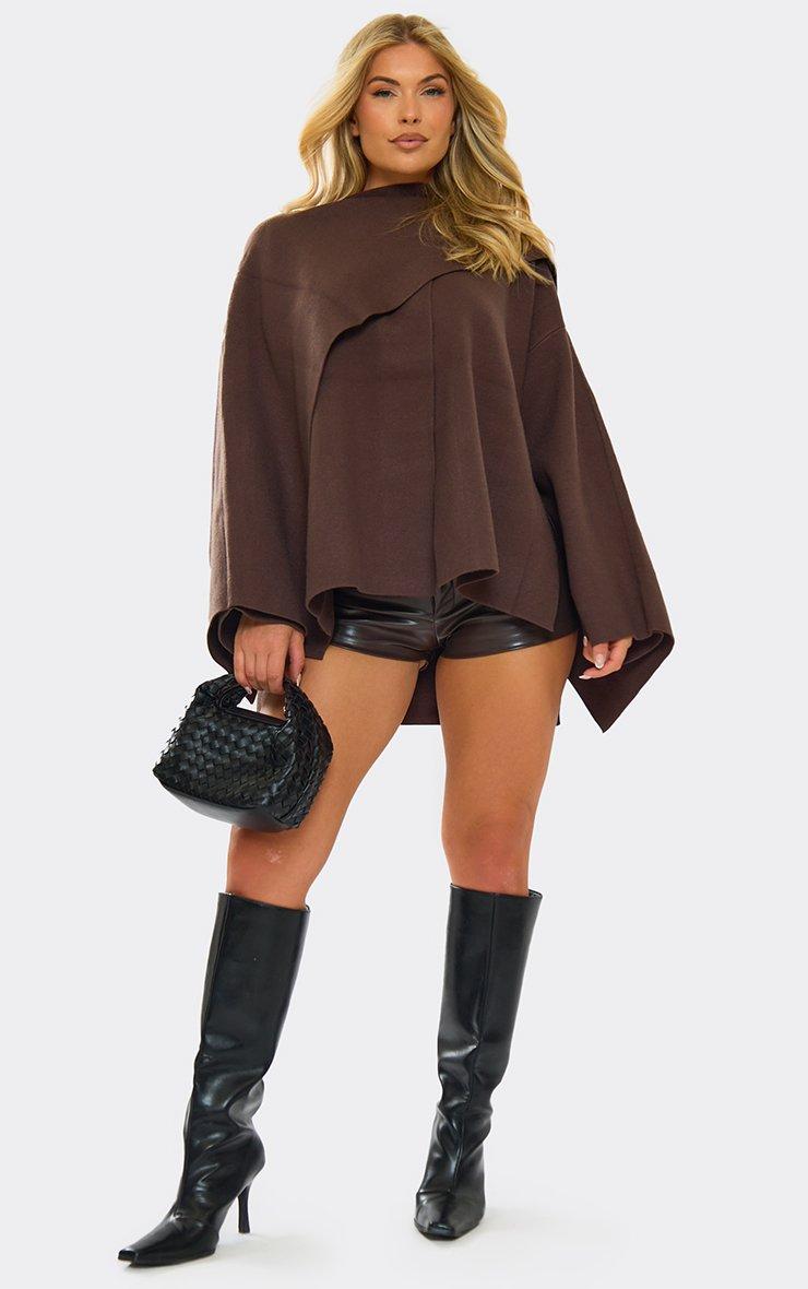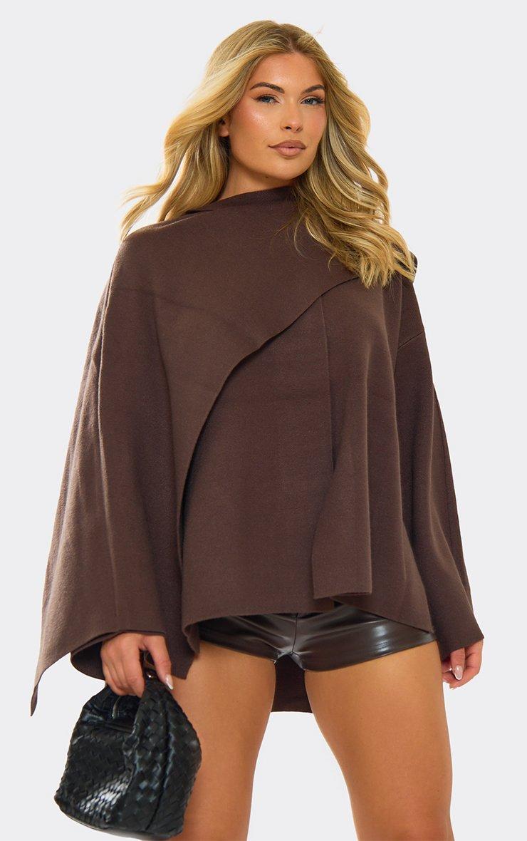High Neck Long Sleeve Cape Top In Chocolate Brown Knit