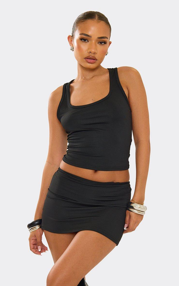 Scoop Neck Vest Top And Mini Bodycon Skirt Co-Ord Set In Black