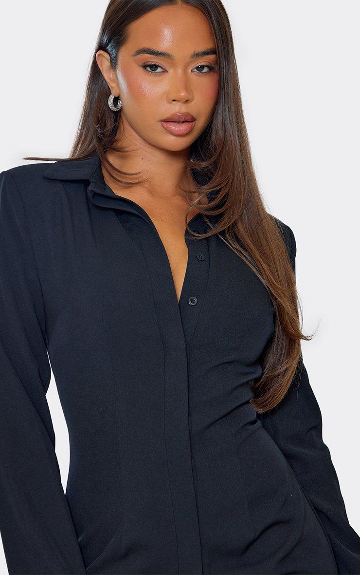 Level up your day drink outfits with this black shoulder pad playsuit. Serving sexy sophistication, it features a structured shoulder pad design and button-up front for a cool-girl but chic edge. Made with a tailored fit, it cinches at the waist and skims your shoulders for a flattering silhouette. If you're stuck on how to style this black shoulder pad playsuit for bottomless brunch, we've got some inspo. It goes hand-in-hand with some hoop earrings and black knee-high boots . This is the playsuit you turn to when you want to impress. Key Features Black Colour Shoulder Pad Detail Button-Up Front Long Sleeve Design Tailored Fit