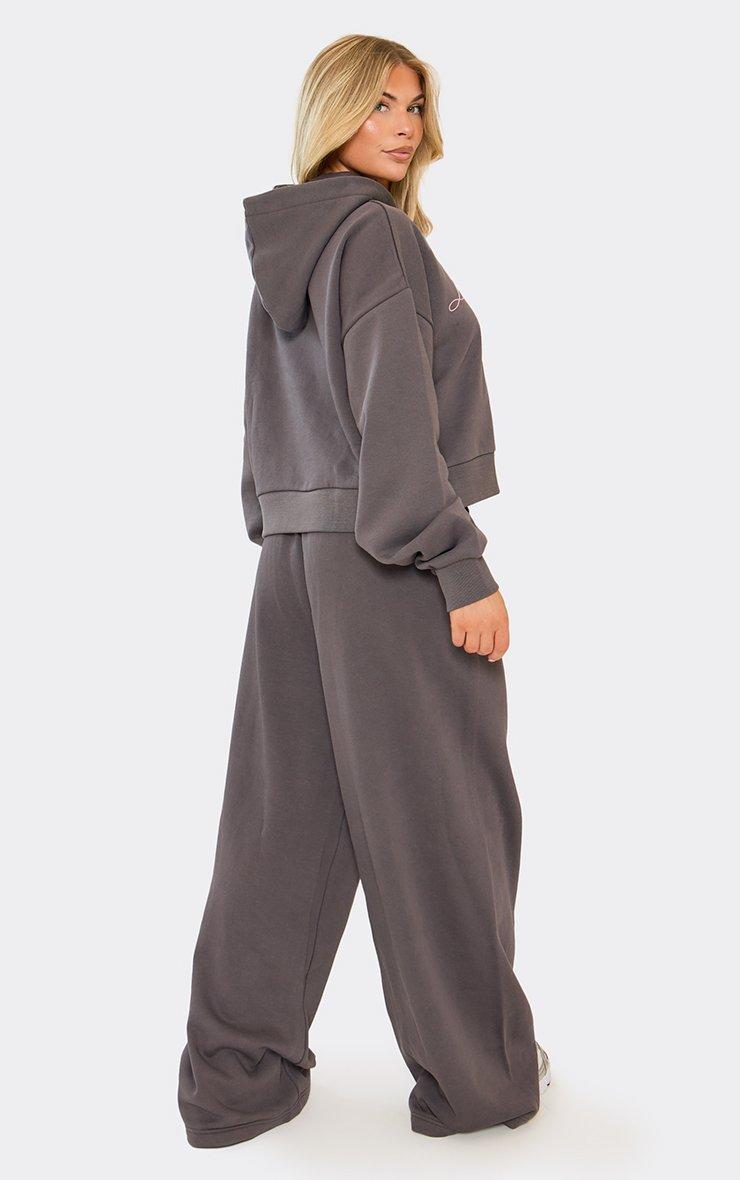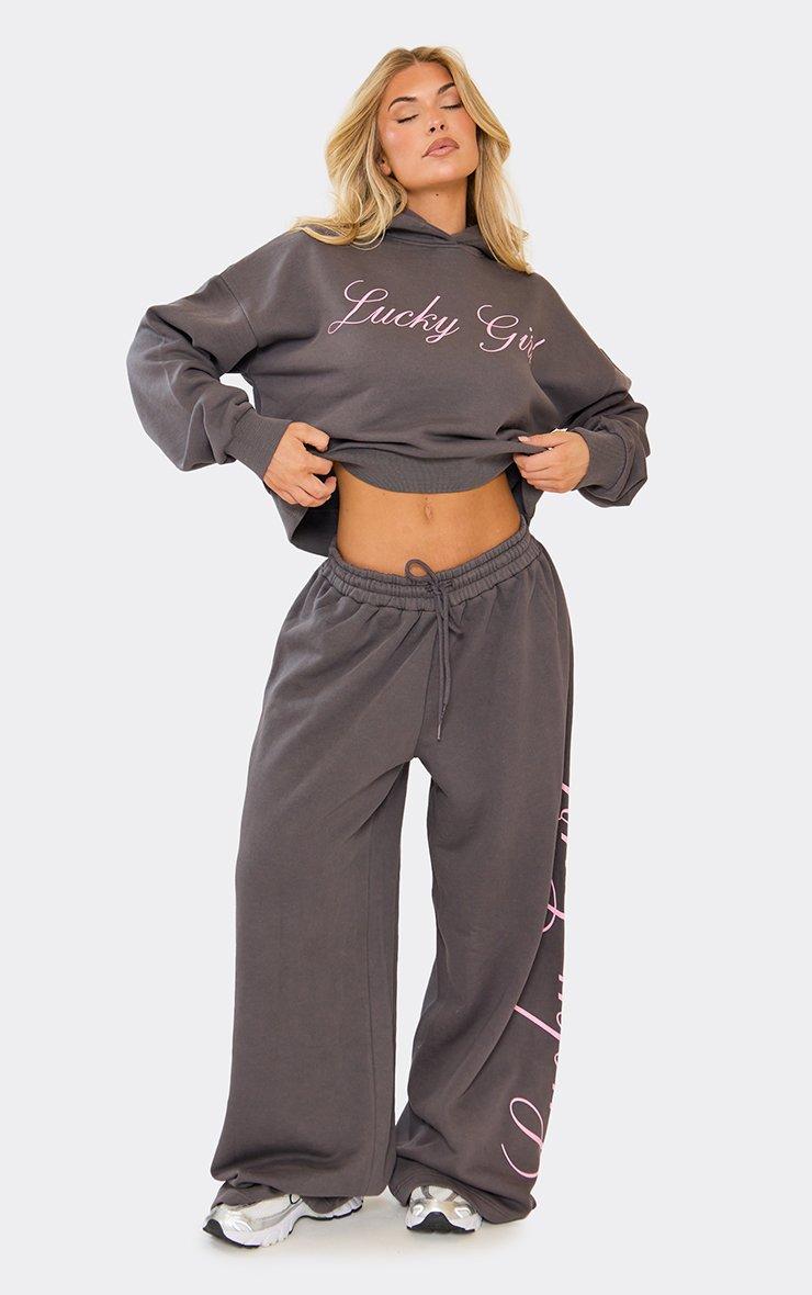 Chic off-duty vibes, doll. Featuring washed charcoal material with graphic and wide leg detailing, these joggers bring relaxed, on-trend energy. Perfect for making effortless street-style statements.