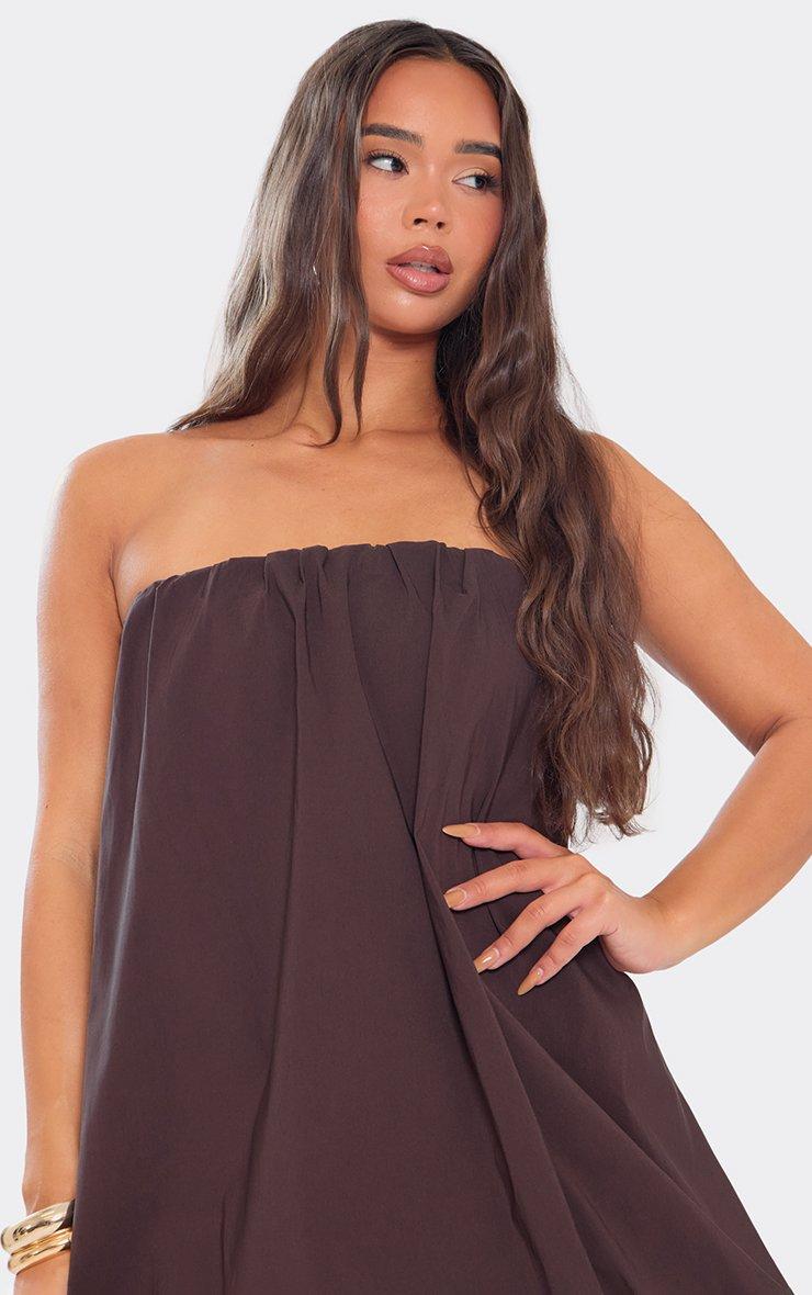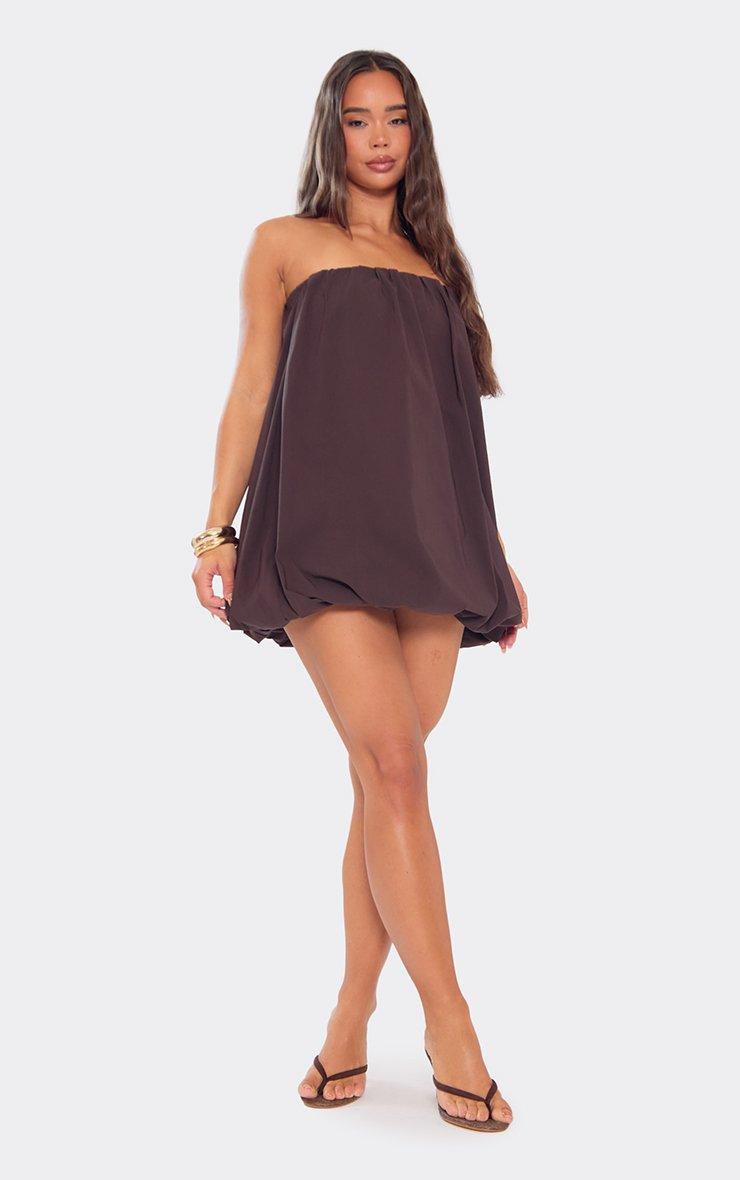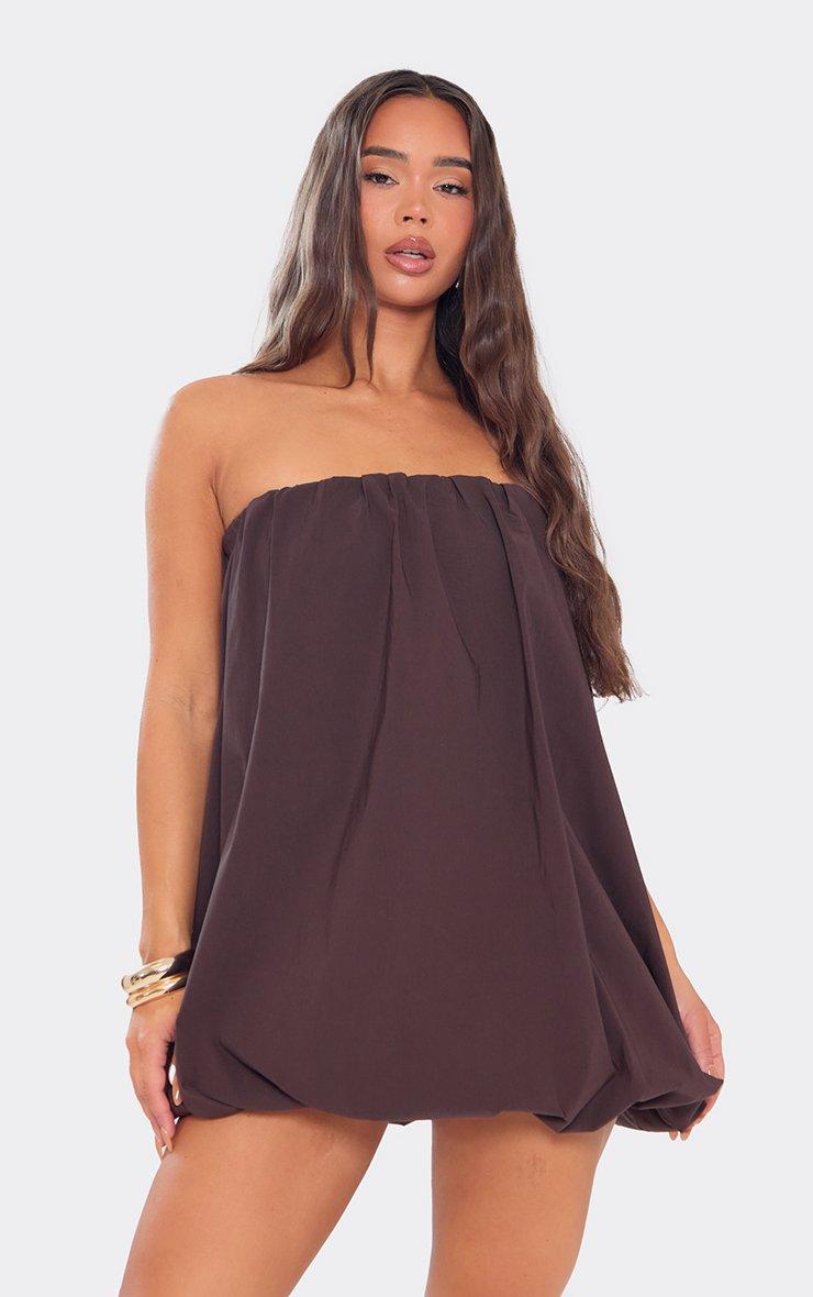 Bandeau Puffball Detail Mini Dress In Chocolate Brown