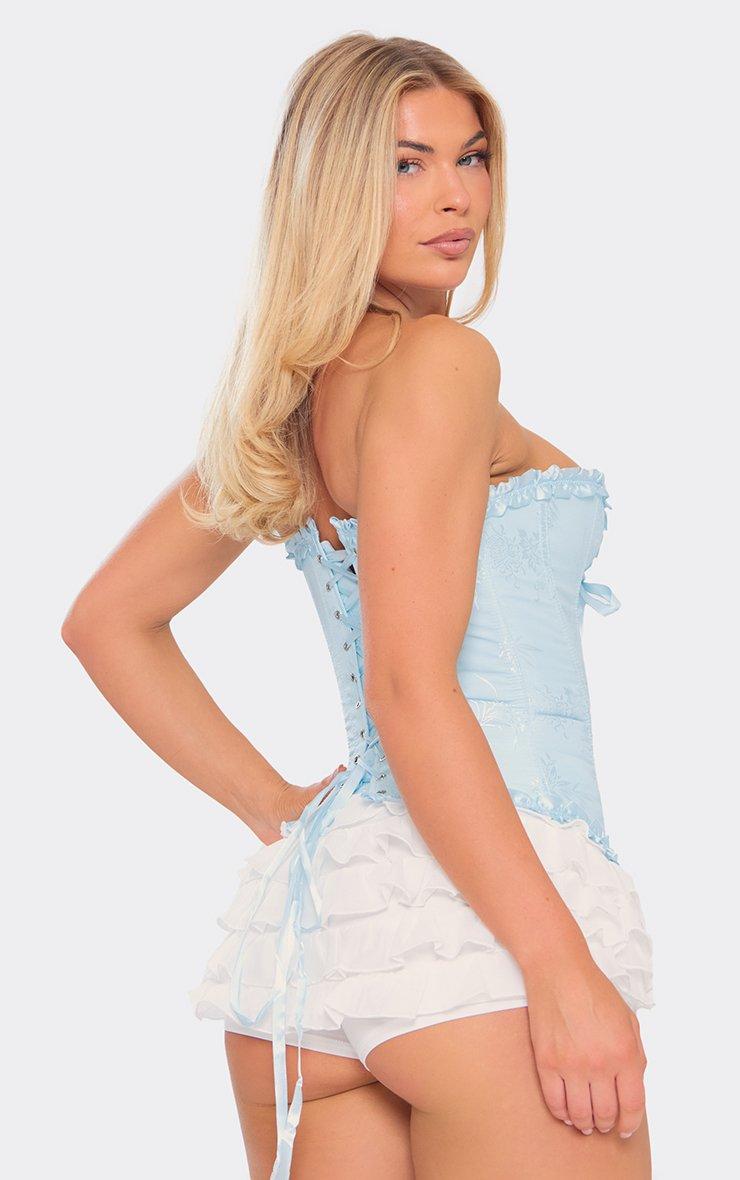 Perfect for a cute day-to-night look, this skort is featuring a white satin material with mid-rise and layered frill detailing for that playful, chic vibe, doll.