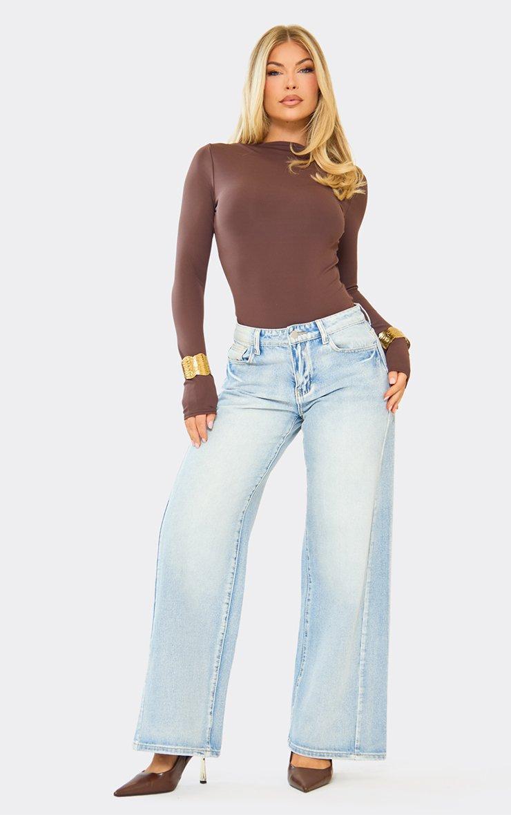 Long Sleeve Slash Neck Bodysuit In Chocolate Brown