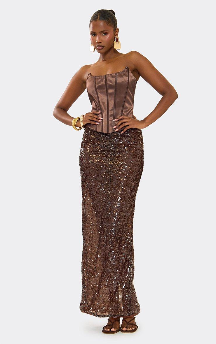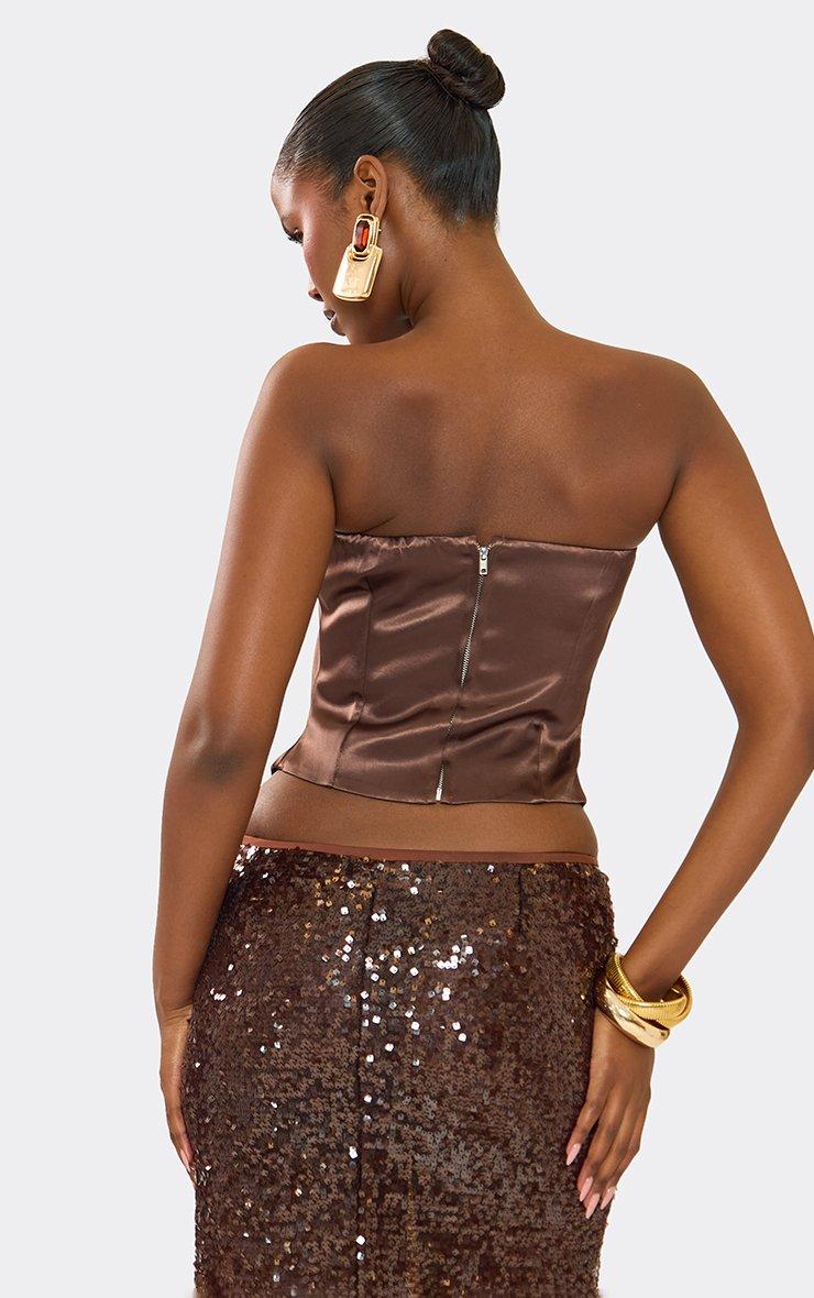 Scoop Neck Structured Corset Top In Brown Satin