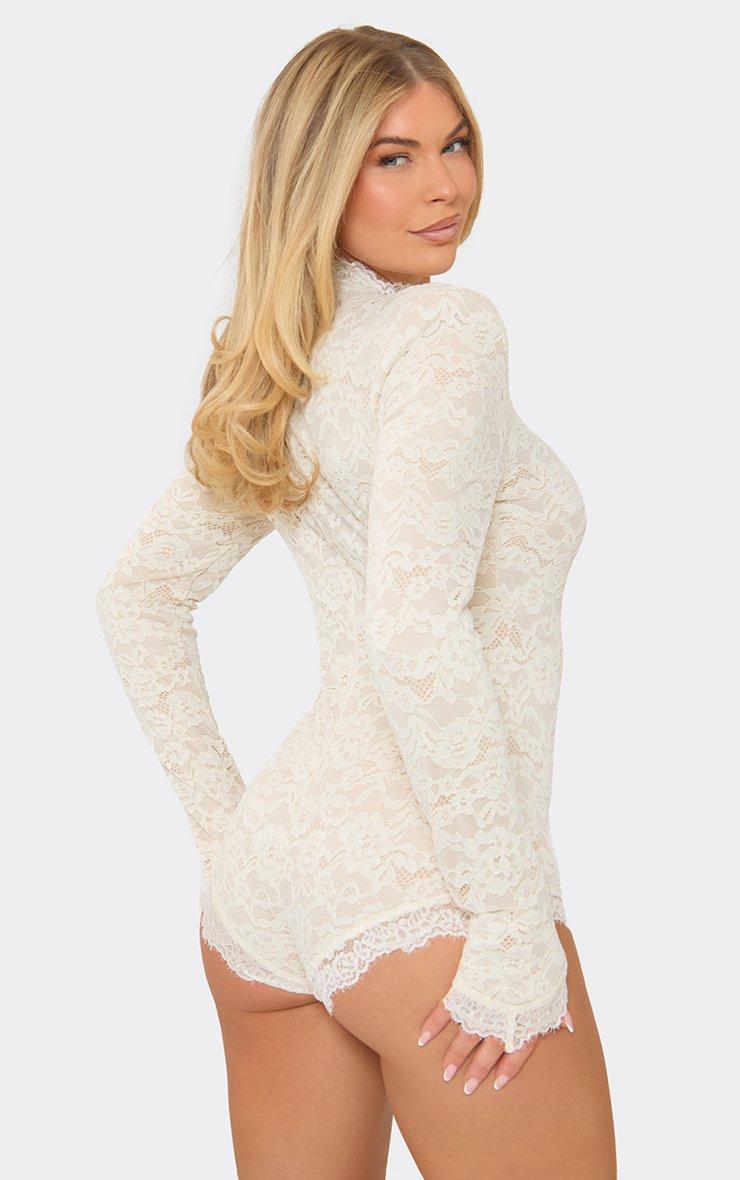 You've just found the ultimate wardrobe hero in this cream lace playsuit, a piece that perfectly captures that dreamy, romantic aesthetic we're all loving right now. Designed with a sophisticated high neck and intricate lace trim detailing, this long-sleeve silhouette offers a fresh alternative to your usual rotation. This cream lace playsuit feels incredibly high-end, featuring a delicate floral lace that's soft enough for all-day wear while still looking totally curated. When you're keeping track of the latest outfit trends, this playsuit is a total winner for bridging the gap between a put-together day look and an effortless evening vibe. Style this playsuit with some western-style boots and a wide-brim hat for a festival-ready feel, or keep it sleek with some barely-there heels for your next brunch date. Key Features Delicate Cream Lace High Neckline Long Sleeve Design Lace Trim Details Flattering Short Cut