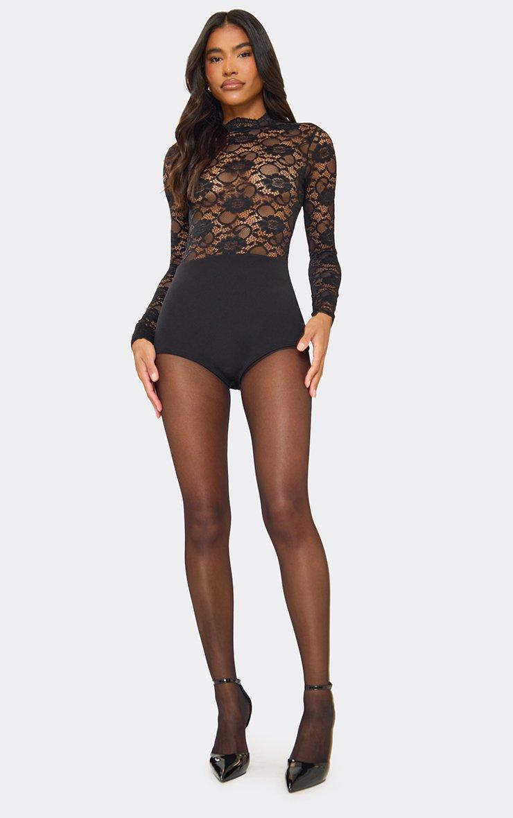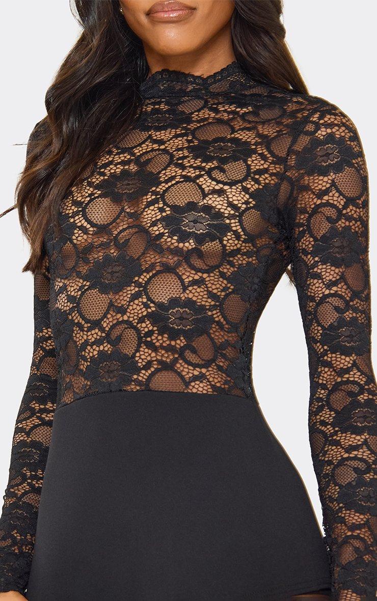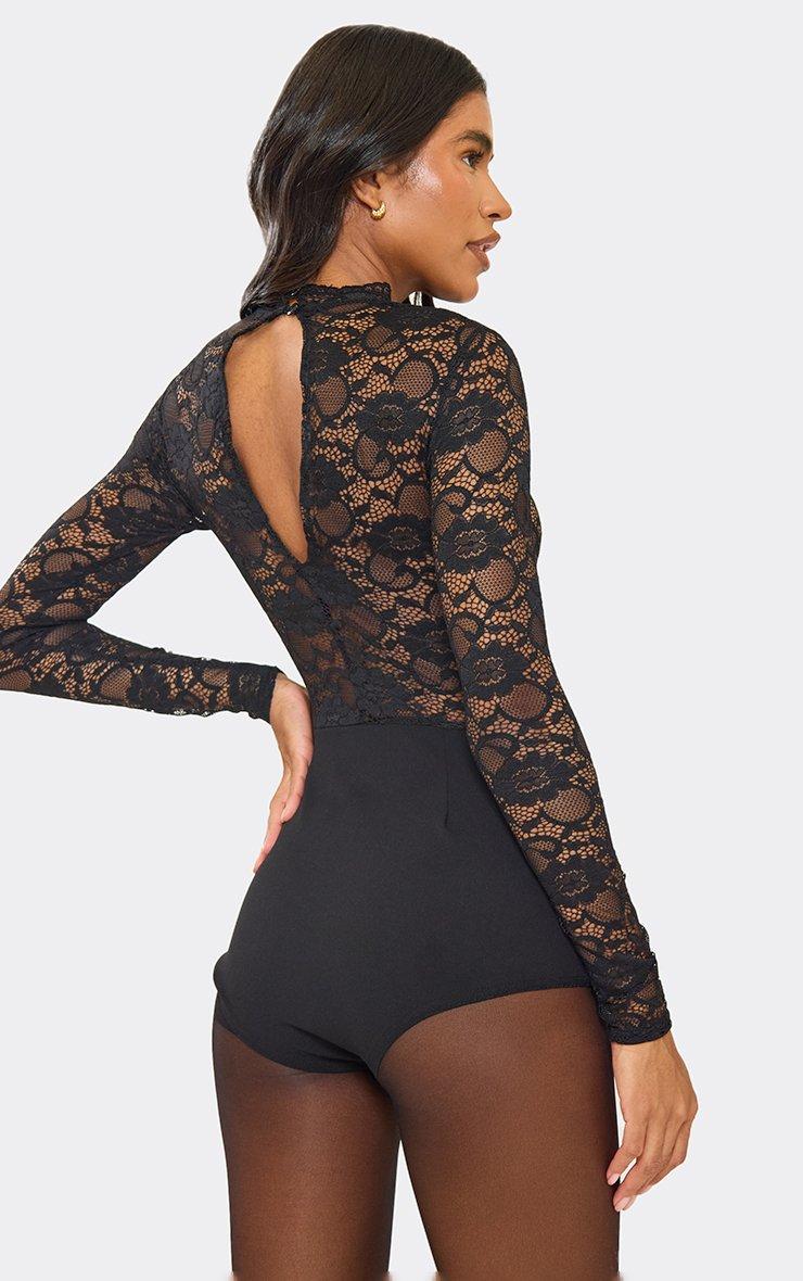 High Neck Contrast Lace Micro Playsuit In Black