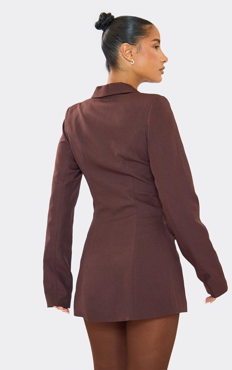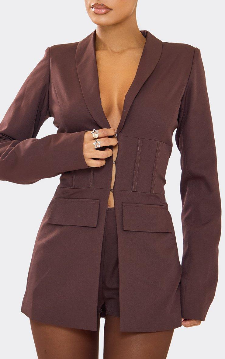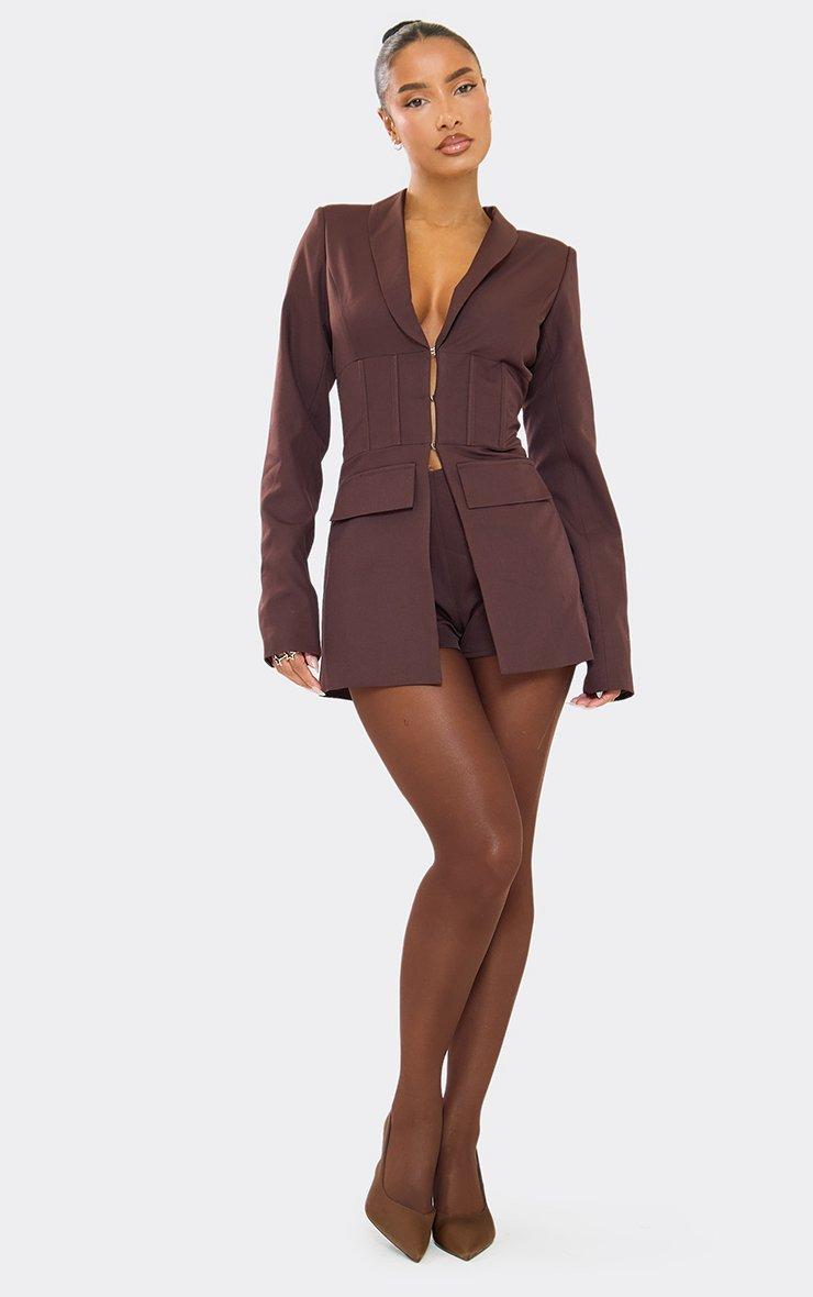 Long Sleeve Split Front Corset Detail Blazer Playsuit In Chocolate Brown