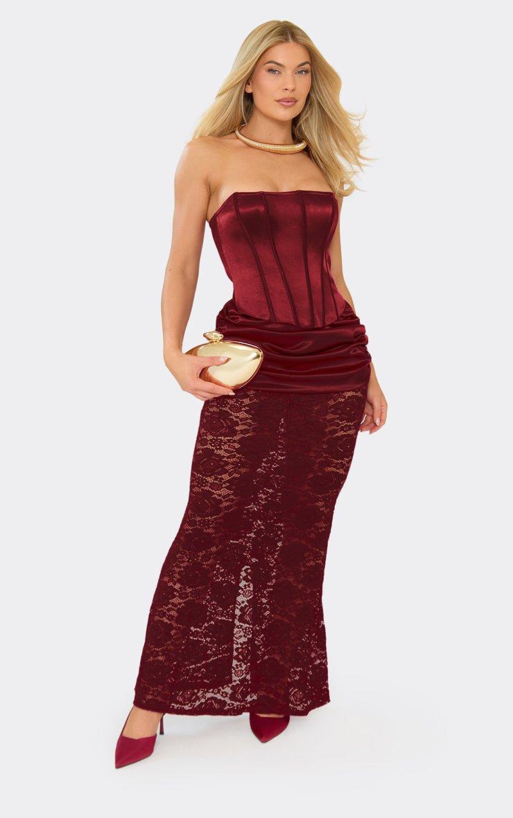 Perfect for nights out, doll. Featuring burgundy satin material with bandeau and corset detailing, this top adds bold, it-girl energy to any outfit. Style with high-waist trousers or a mini skirt and heels for a boss-babe finish.