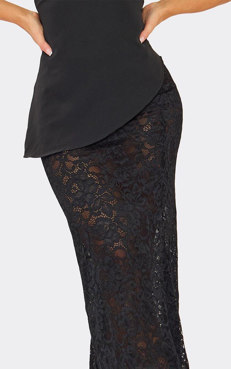 Elevate your evening wardrobe with this stunning lace black maxi skirt, perfect for both evening wear dress code and black tie dress code occasions. Made from delicate lace, this lace black maxi skirt sits at a flattering mid-rise waist, creating a sleek, elongated silhouette. The intricate lace overlay adds a touch of elegance while the flowing maxi length ensures graceful movement, making it ideal for formal events, parties, or cocktail evenings. Pair it with a structured corset top and heels for a glamorous look or style with a sleek blouse and statement accessories for timeless sophistication. This skirt is a versatile, show-stopping piece for any special occasion. Key Features Black Colour Mid-Rise Waist Lace Overlay Detailing Maxi Length