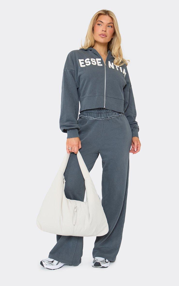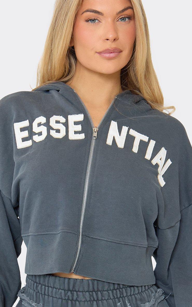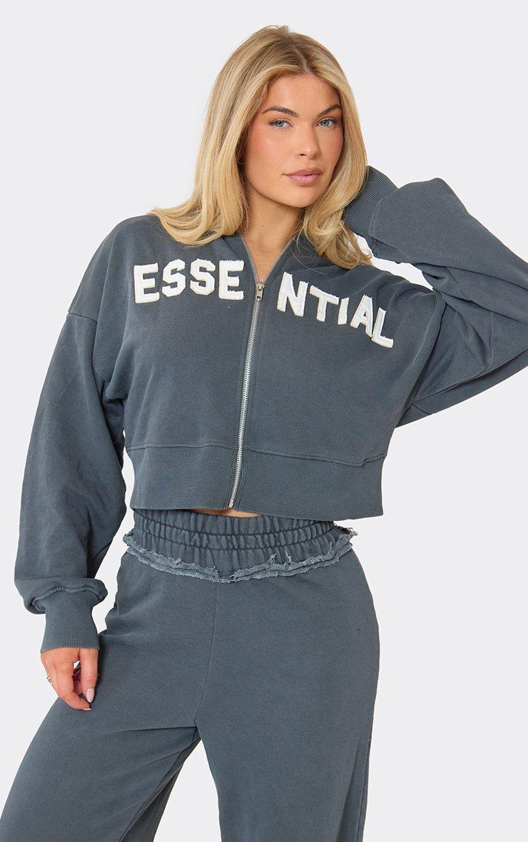 Perfect for off-duty days or street-style vibes, washed charcoal grey brushed fabric with zip-up front and essential graphic detailing for a relaxed, on-trend fit. Layer over joggers or jeans with trainers for effortless it-girl energy.