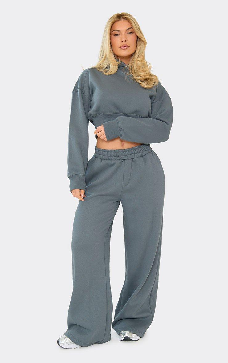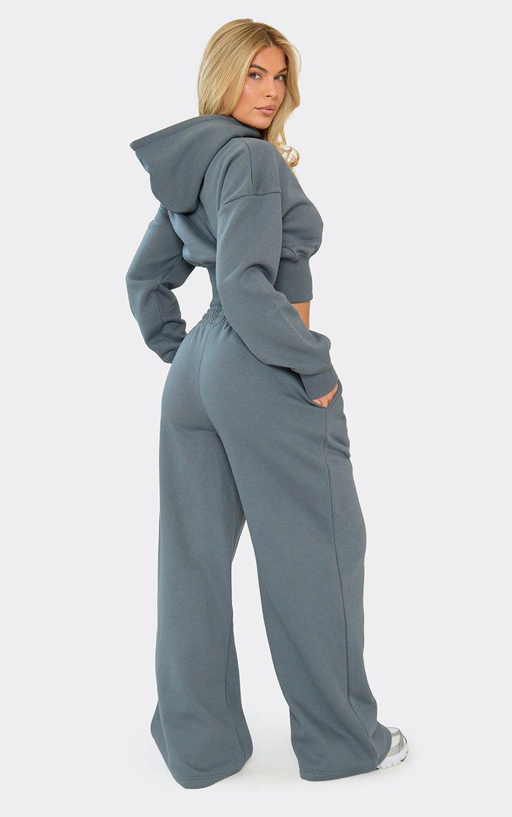 Casual days get on-trend it-girl vibes with these effortless joggers. Featuring steel blue soft fleece material with mid rise fit and wide leg detailing. Style with cropped hoodie and trainers for day or fitted top and boots for polished plans.