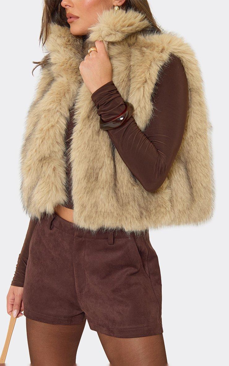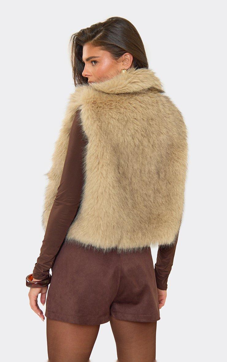 Perfect for cosy-season or statement-day vibes, doll. Featuring stone faux fur material with collared and gilet detailing, this piece adds chic, it-girl energy to any outfit. Style over a fitted top and high-waist trousers or jeans with boots for a boss-babe finish.