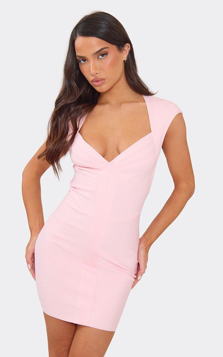 Get ready to turn heads at your next big night out. Featuring pink bandage material with plunge neck detailing and a mini length. Style with your go-to high heels and a matching clutch for a look that's totally on-trend.