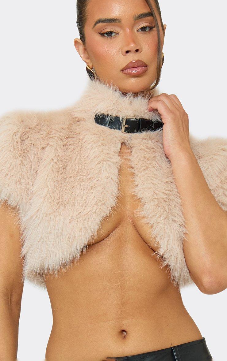 Perfect for day-to-night vibes or statement styling, cream faux fur with short sleeves and belt-neck detailing for a chic, on-trend top. Pair with tailored trousers or a mini skirt and heels for effortless it-girl energy.
