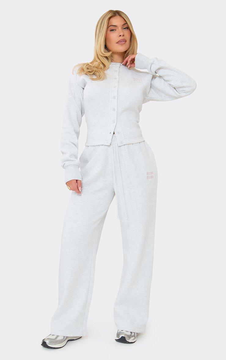 Nail the ultimate model-off-duty look with these chilled essentials, perfect for your next brunch date. Featuring light grey marl sweat material with embroidered detailing, a drawstring waist and a relaxed wide leg.