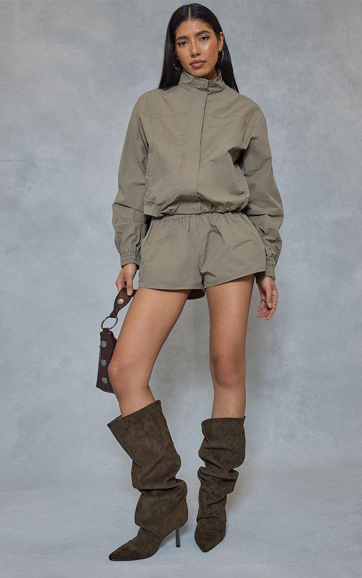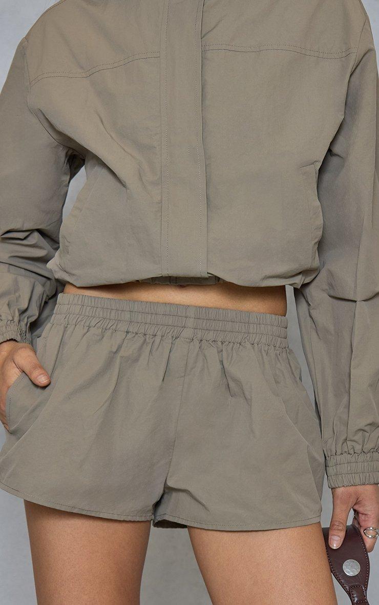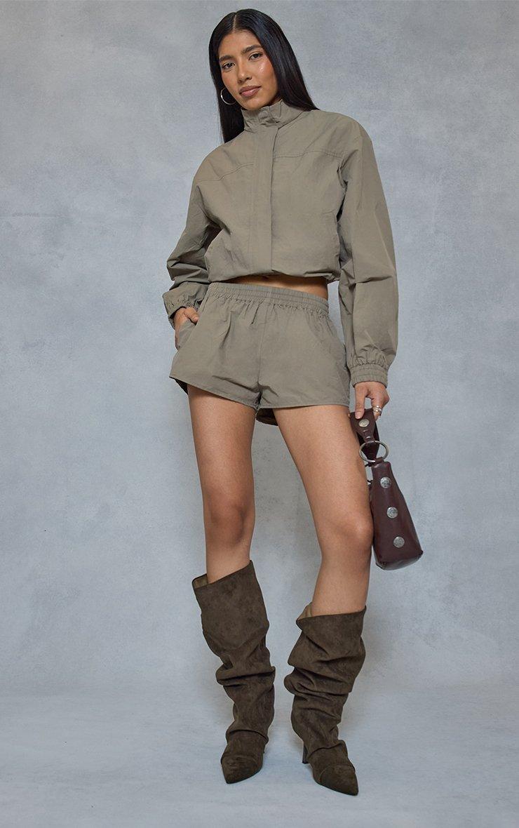 Low Rise Elastic Waistband Detail Shorts In Khaki Shell