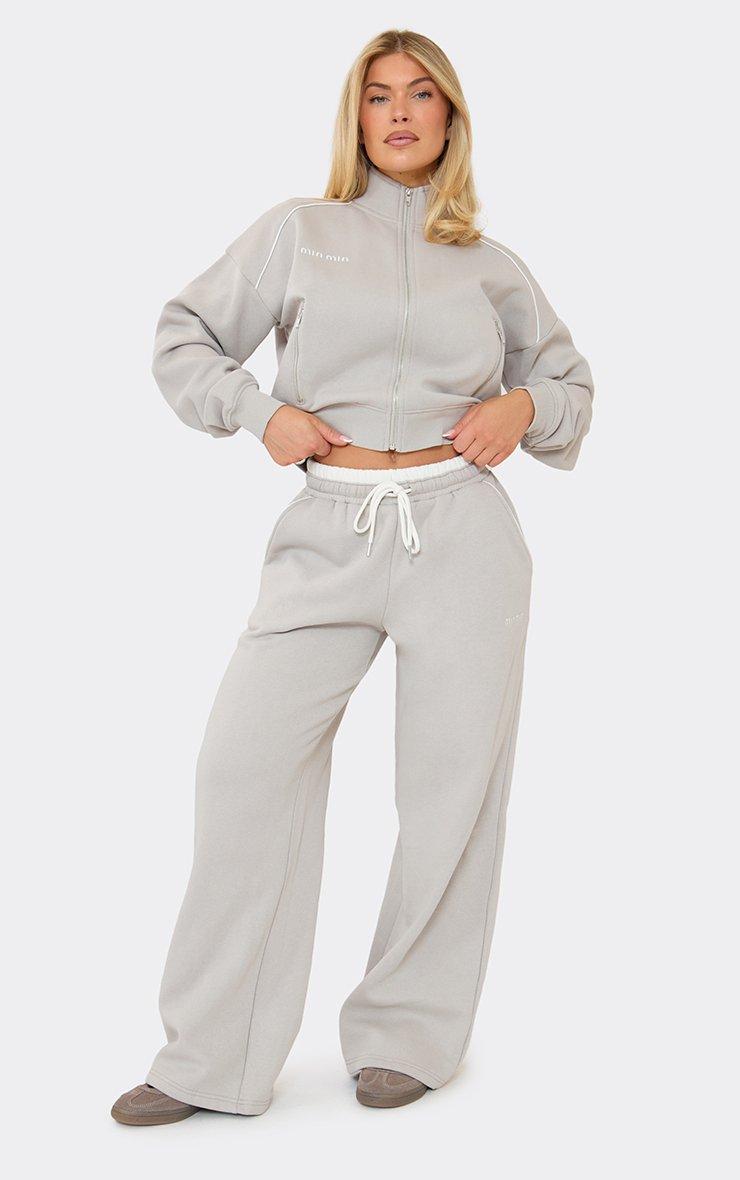 Mid Rise Contrast Piping 'Min Min' Embroidered Graphic Wide Leg Joggers In Grey