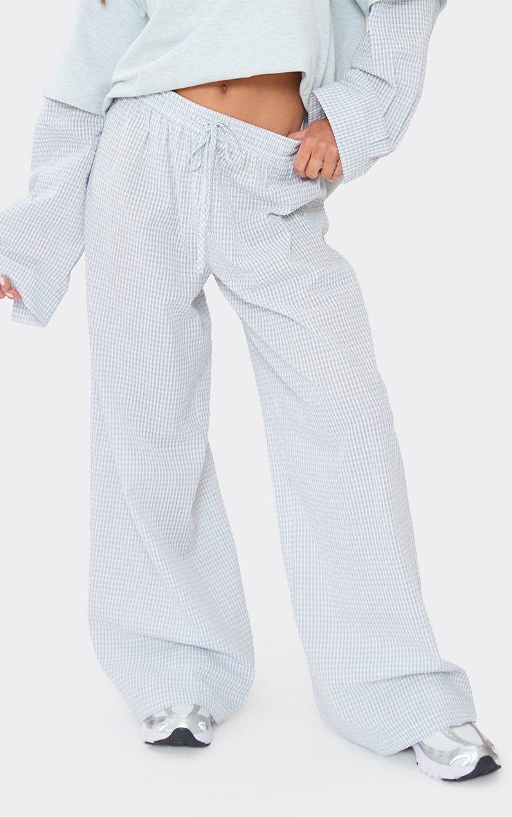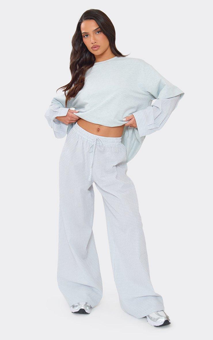Nail those off-duty days in this absolute mood. Featuring grey checkered print material with mid rise tie waist and wide leg detailing, these trousers are a total win. Style with the matching top and fresh trainers for the ultimate cool-girl look.