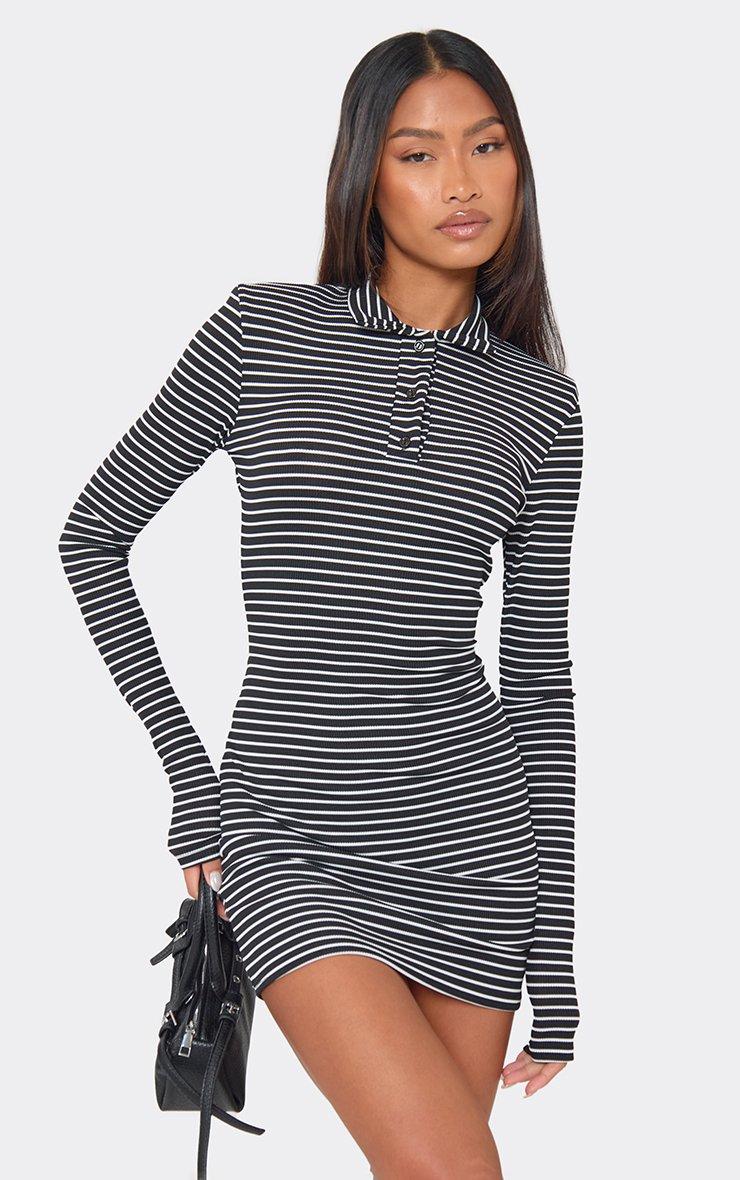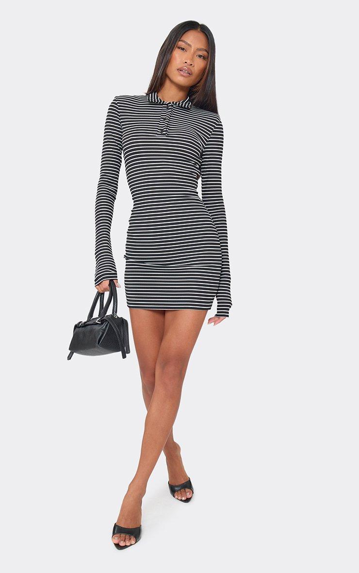 Command the room at your next big meeting or social fix. Featuring black woven material with polo collar shoulder pad detailing, this mini dress is giving major boss-babe energy. Style with sheer tights and some chunky loafers for a total vibe.