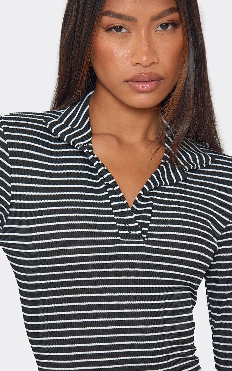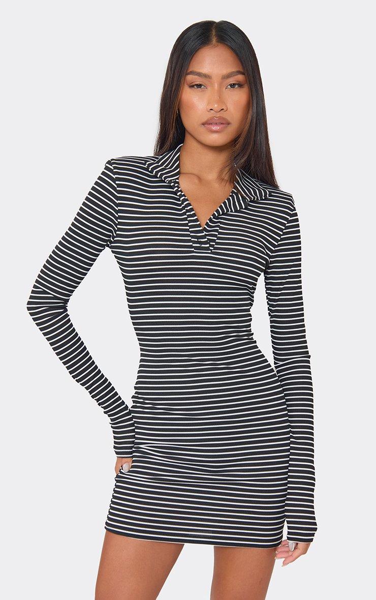 Polo Collar Shoulder Pad Detail Mini Dress In Black