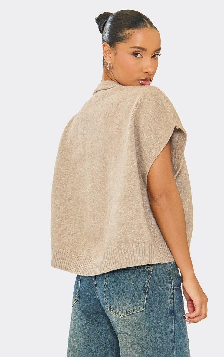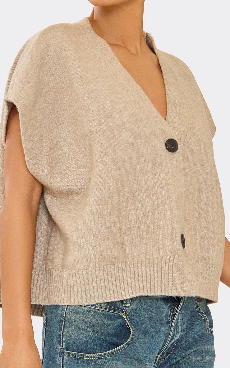 V Neck Cape Sleeve Button Down Top In Stone Knit