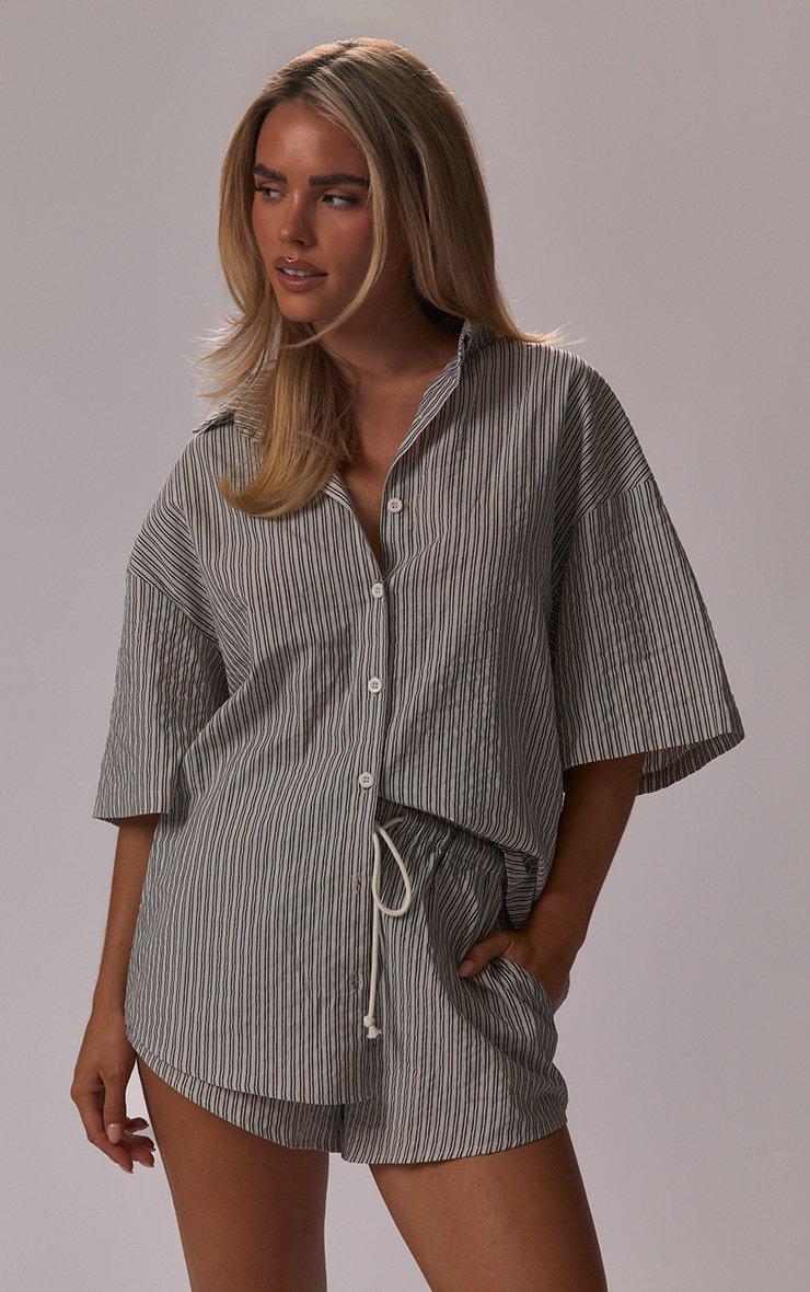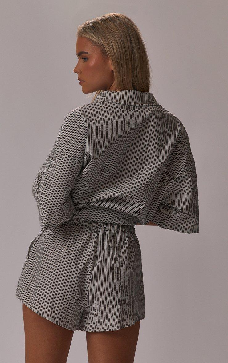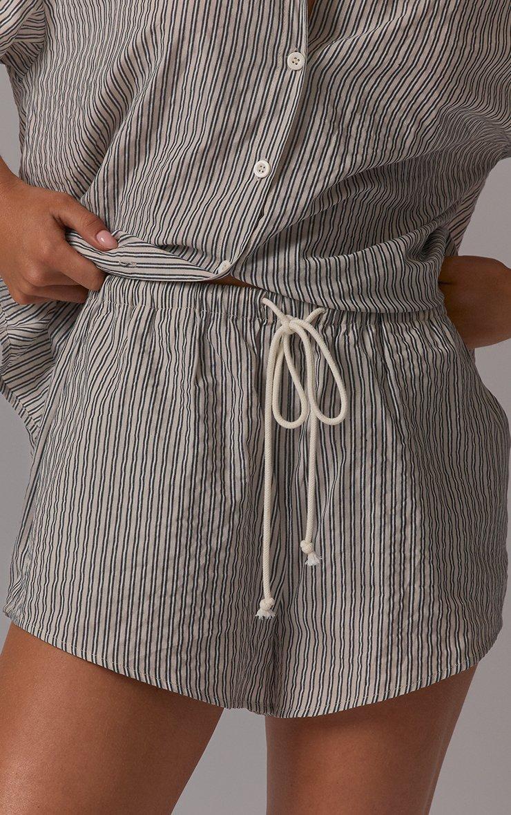 Your summer wardrobe just got an upgrade. Featuring grey stripe crinkle poplin material with drawstring waist detailing and a mini fit. Style with the matching shirt and fresh trainers for a casual-cool look that is totally on-trend.