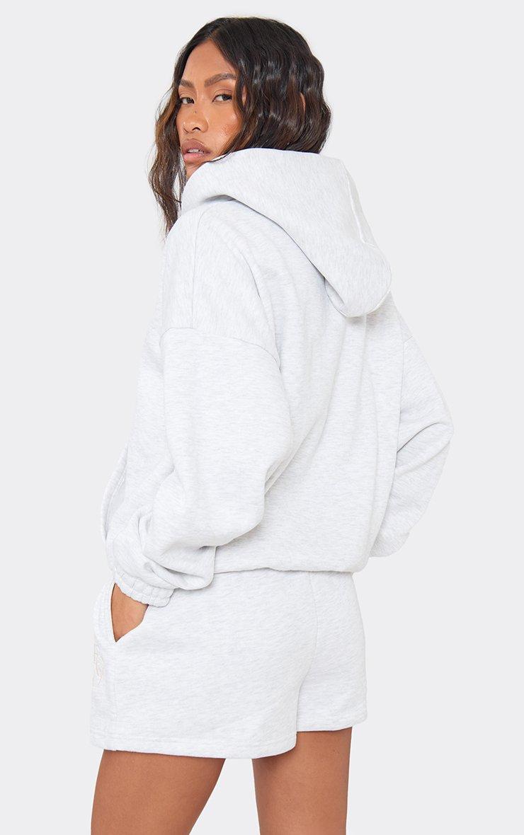 Upgrade your cozy collection in light grey marl material featuring Ego embroidered graphic detailing and an oversized zip-up fit. This sharp, high-octane hoodie delivers a total "off-duty" aesthetic for a major it-girl finish. Style with matching sweat shorts and silver jewelry for a polished vibe.