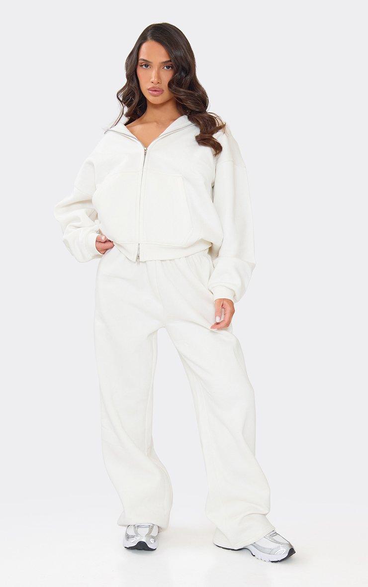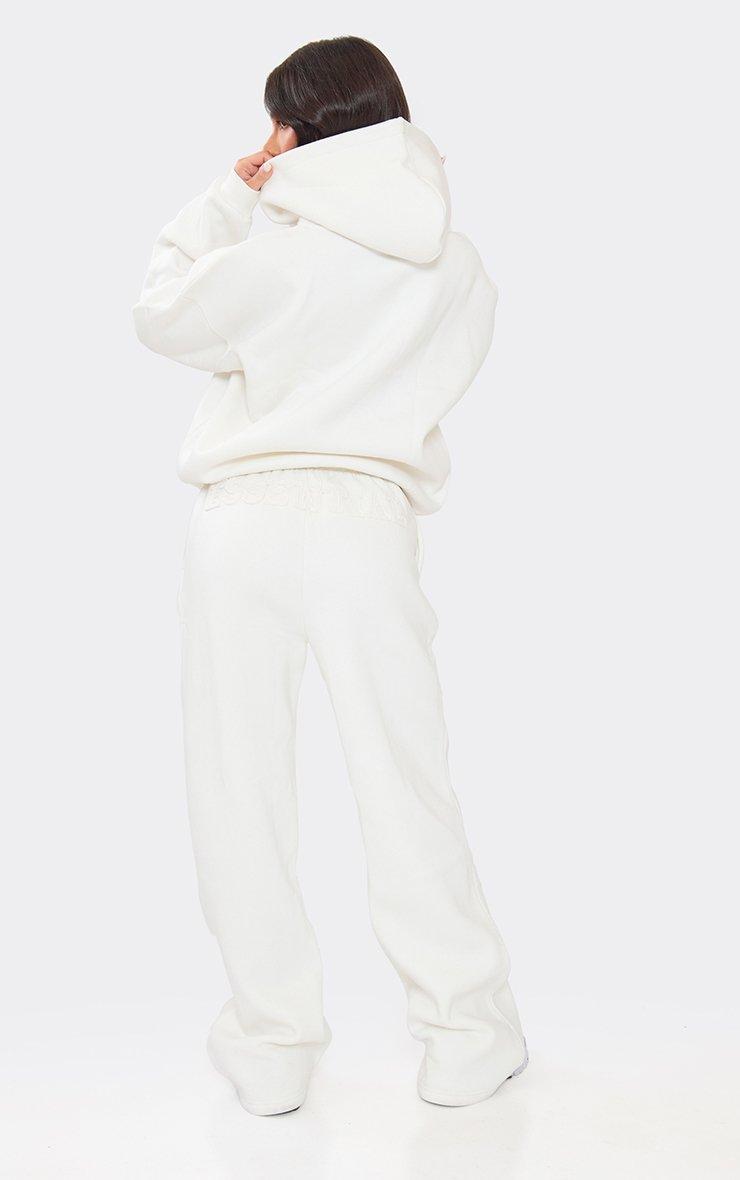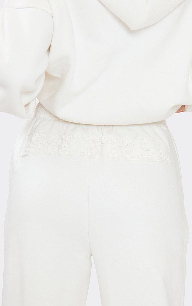 Revamp your off-duty staples in cream material featuring a low rise and essential graphic back detailing. These sharp, high-octane joggers deliver a total "clean girl" aesthetic for a major it-girl finish. Style with a matching cropped hoodie and gold jewelry for a polished vibe.
