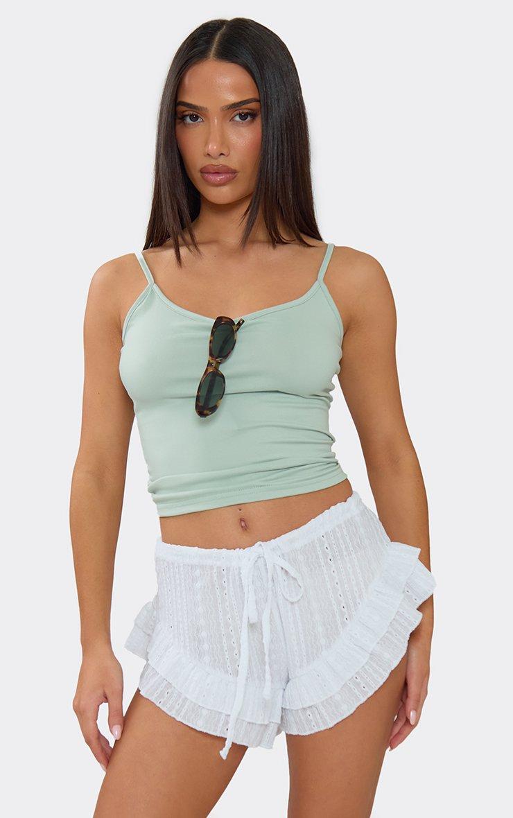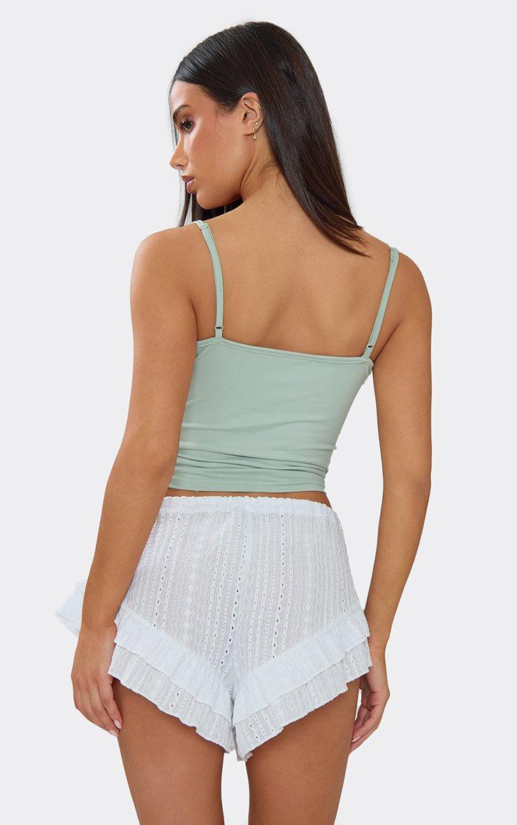 Drawstring Waist Frilled Hem Mini Shorts In White Texture