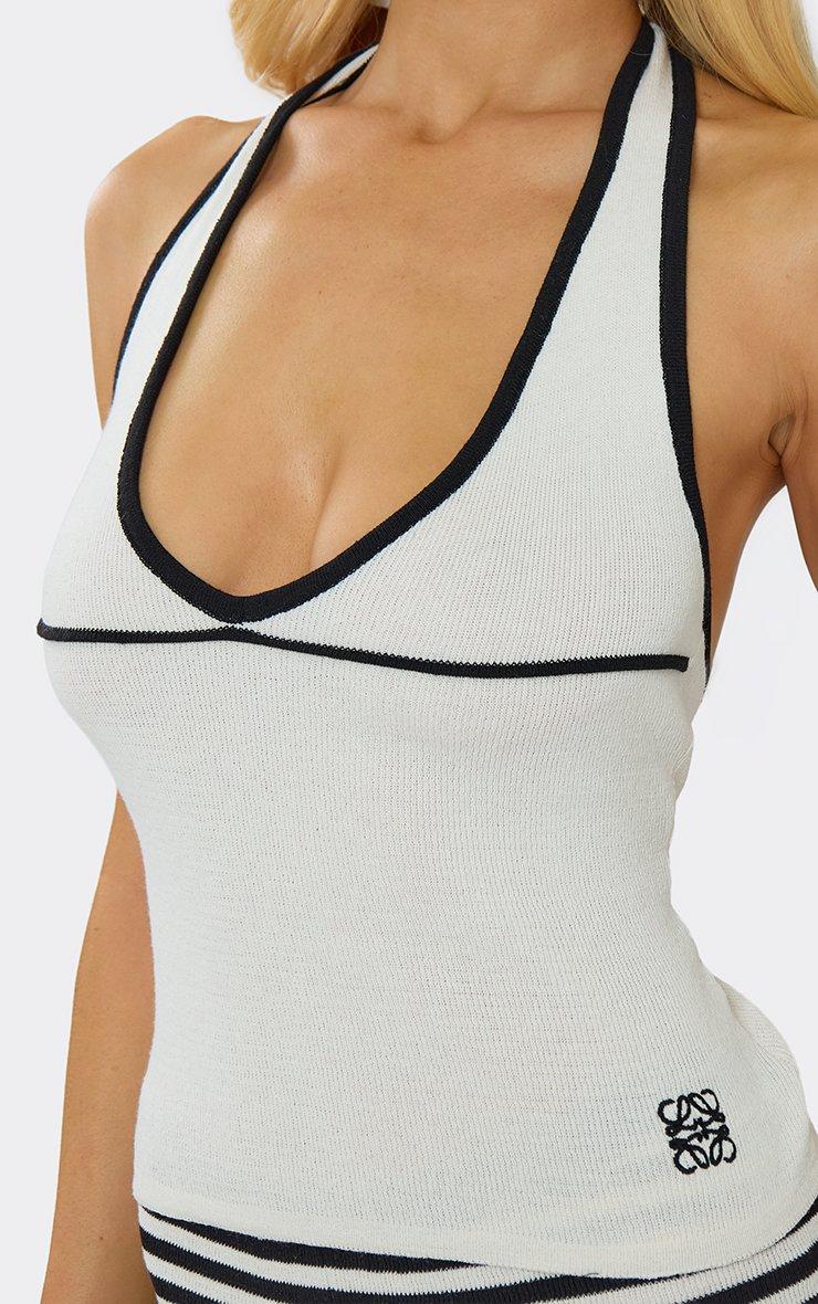 Halterneck Contrast Logo Detail Top In White Knit