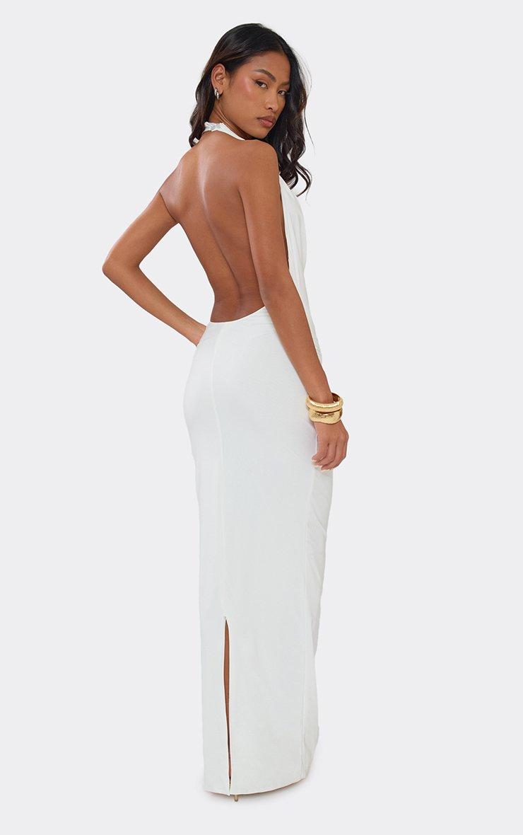 Cowl Front Halterneck Trim Detail Maxi Dress In White
