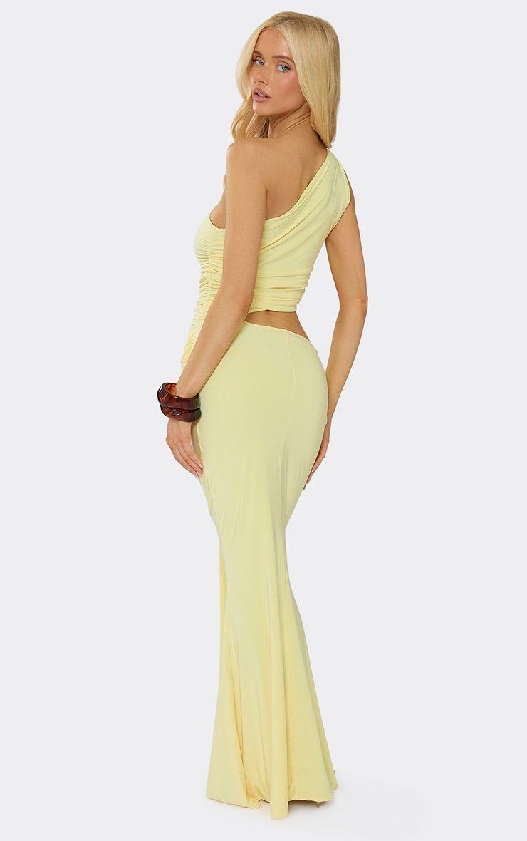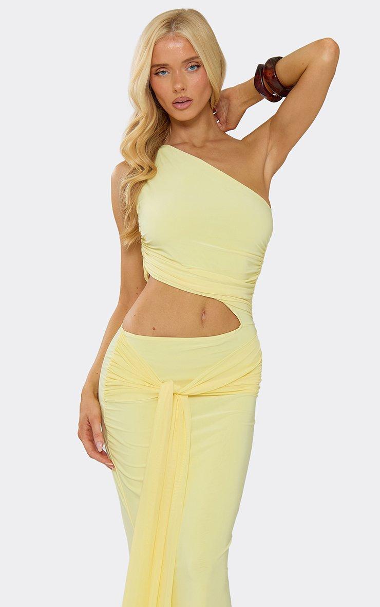One Shoulder Cut Out Side Draped Front Maxi Dress In Yellow