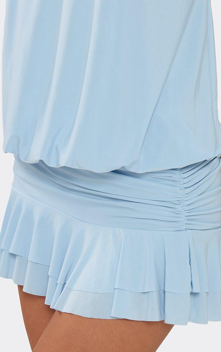 High Neck Frilled Hem Blouson Mini Dress In Blue