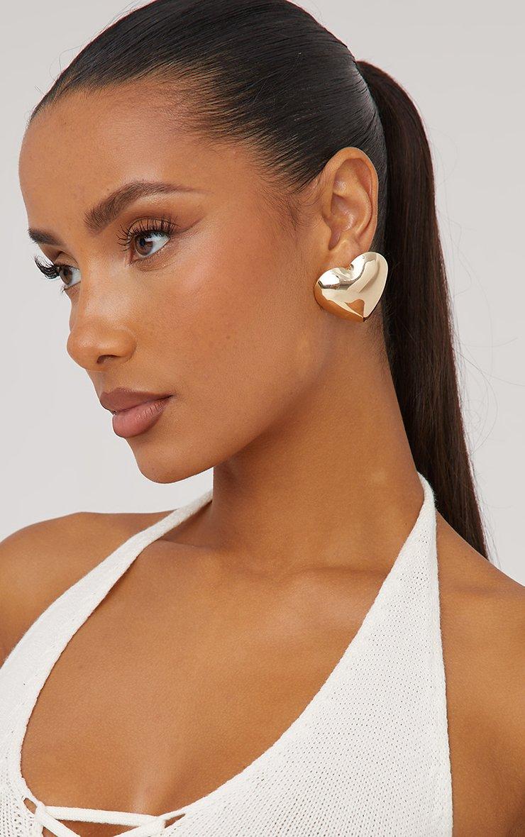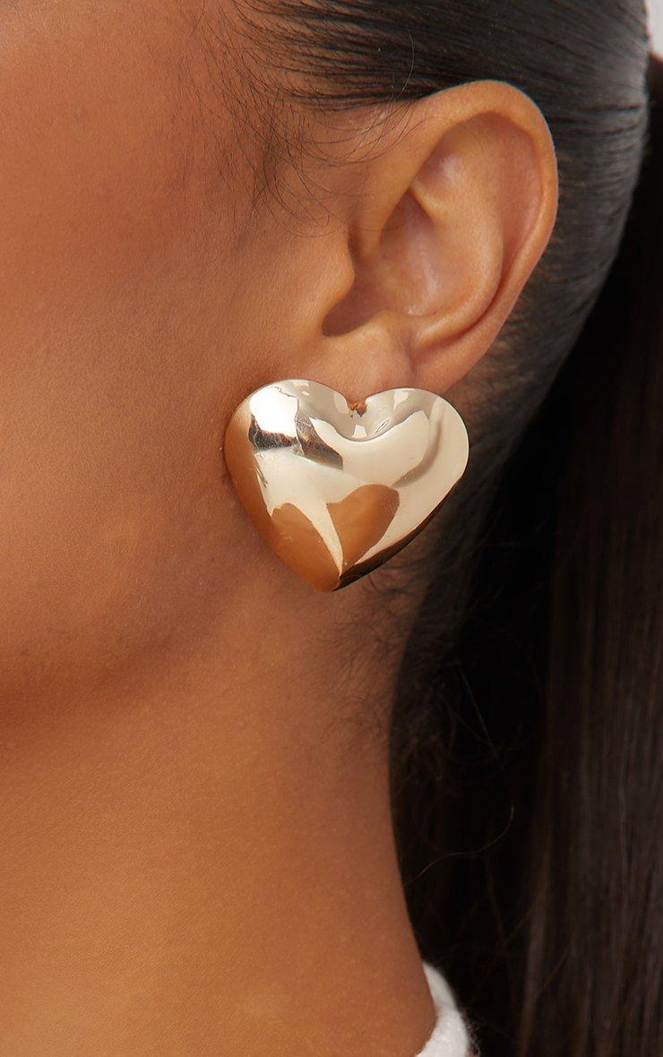 Accessorize your weekend look with these must haves doll. Featuring a gold material, with heart shaped detailing, an oversized fit and an earring design.
