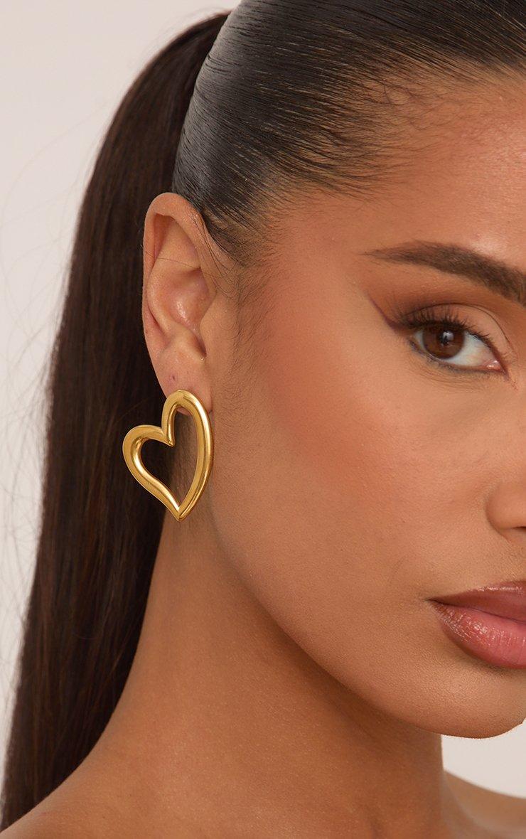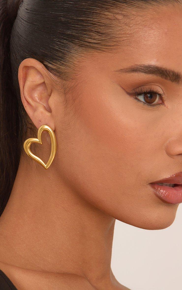 Cut Out Heart Shape Stud Earrings In Gold