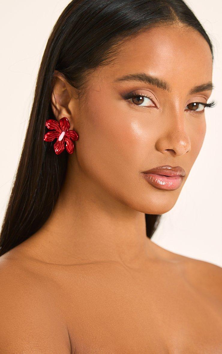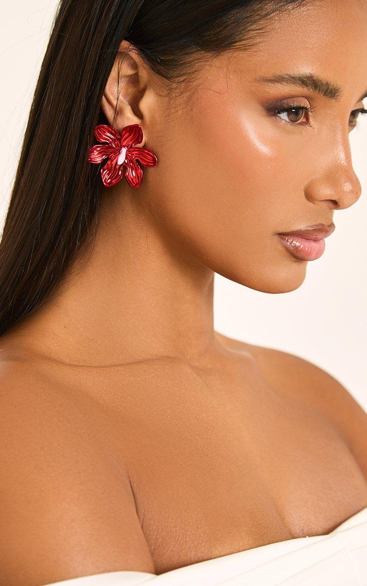 Flower Detail Stud Earrings In Red