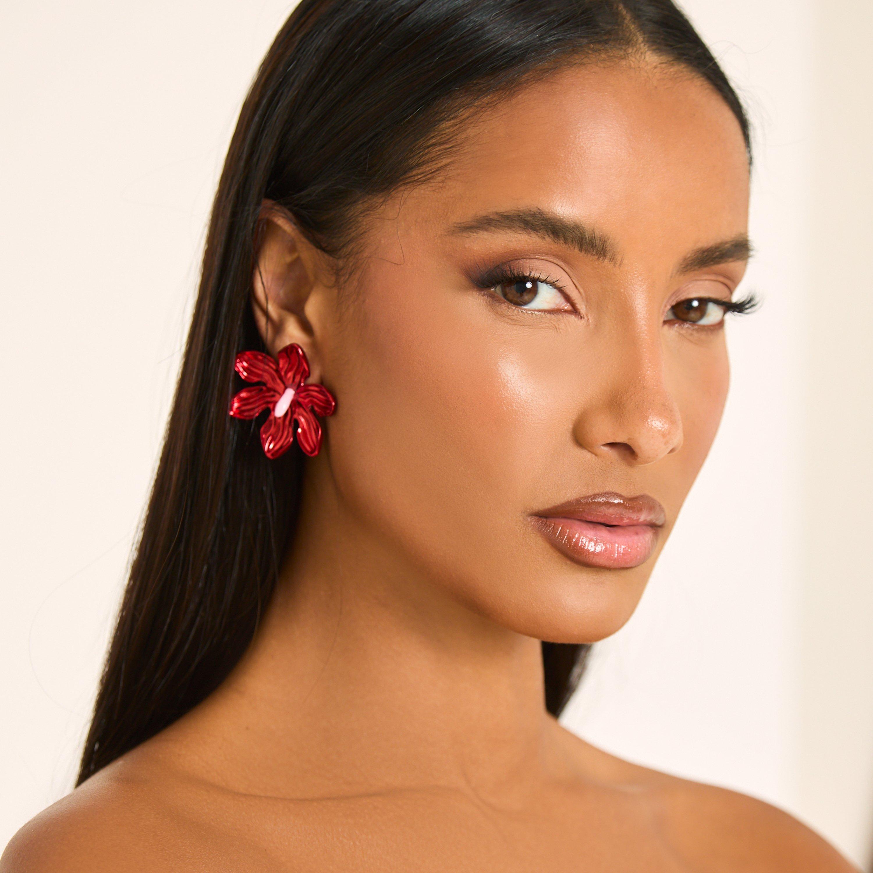 Vibrant and bold, doll. Featuring a striking red flower detail, these stud earrings add a pop of colour and playful elegance to your look. Perfect for making a statement with just the right touch of flair!