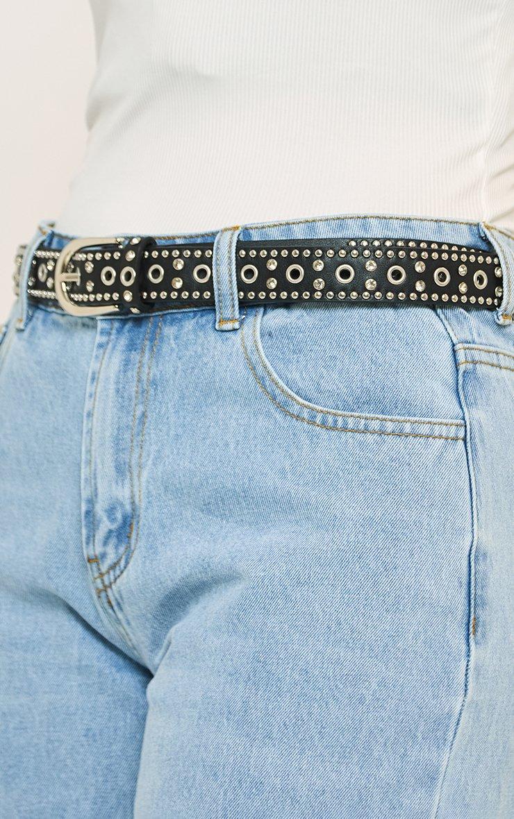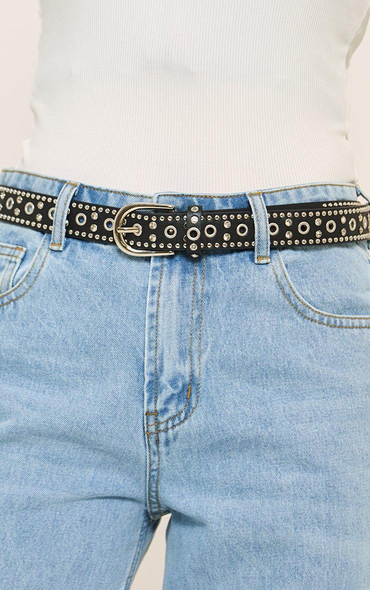 Stud Detail Biker Belt In Black Faux Leather