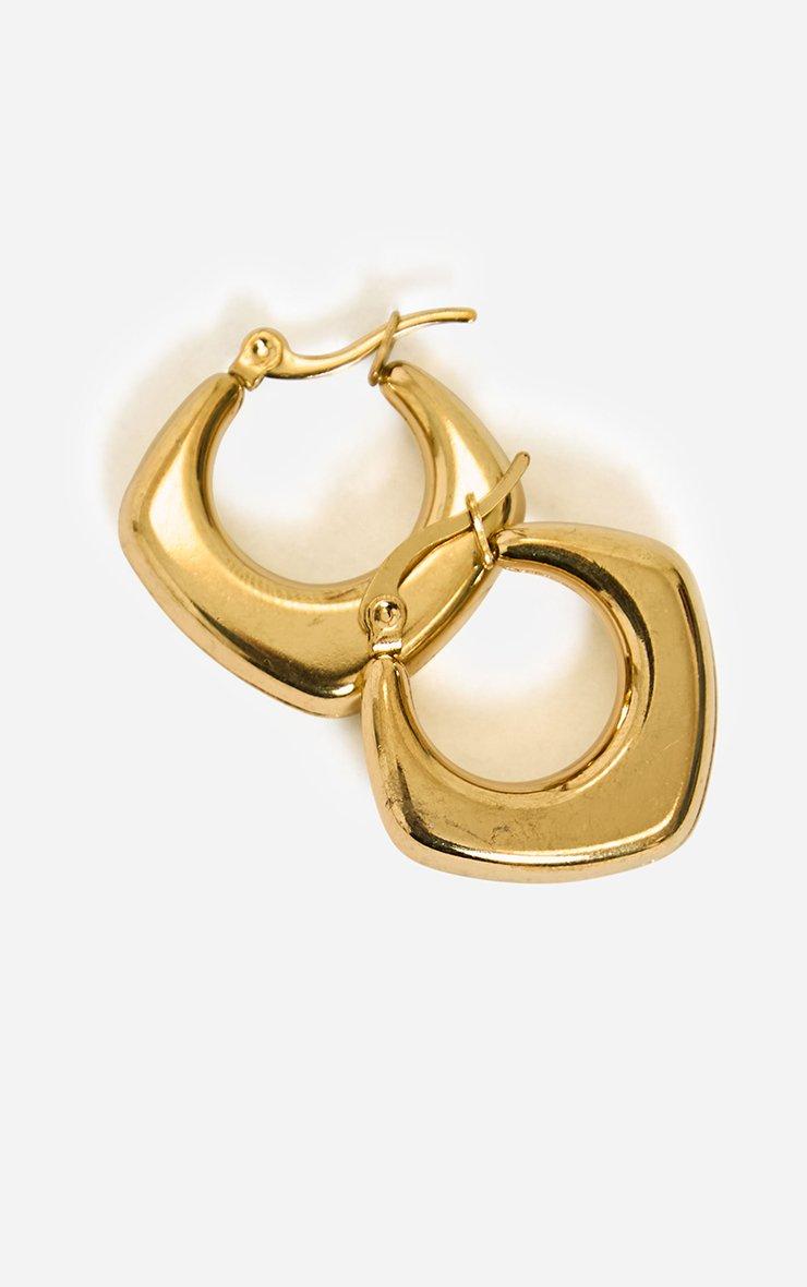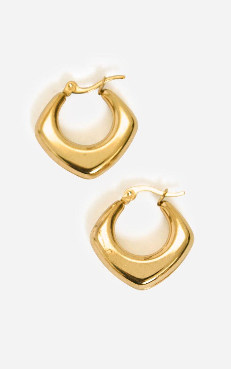 Ready to add some flair, doll? Featuring a gold metal material with a unique shaped design, these mini hoops are your go-to for effortless style with a twist. Chic and bold, all in one!
