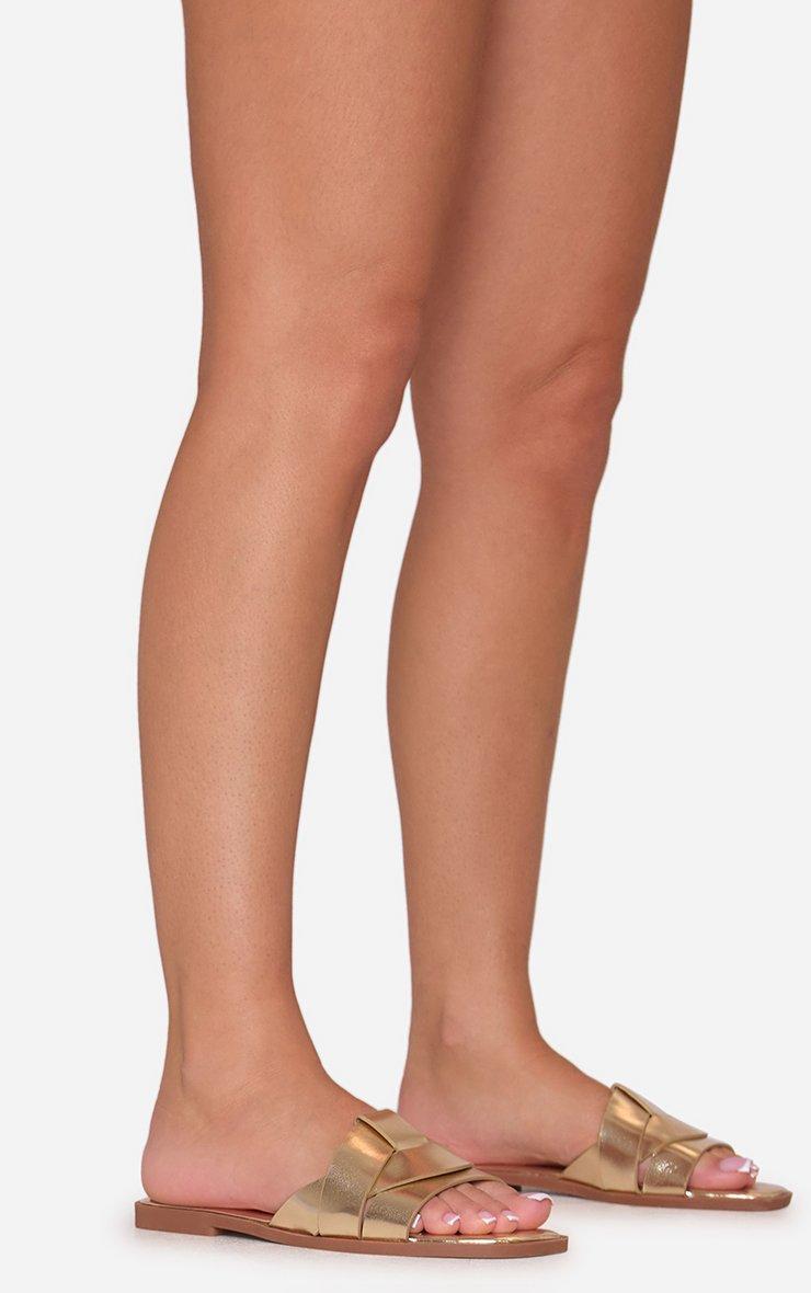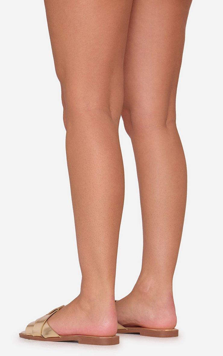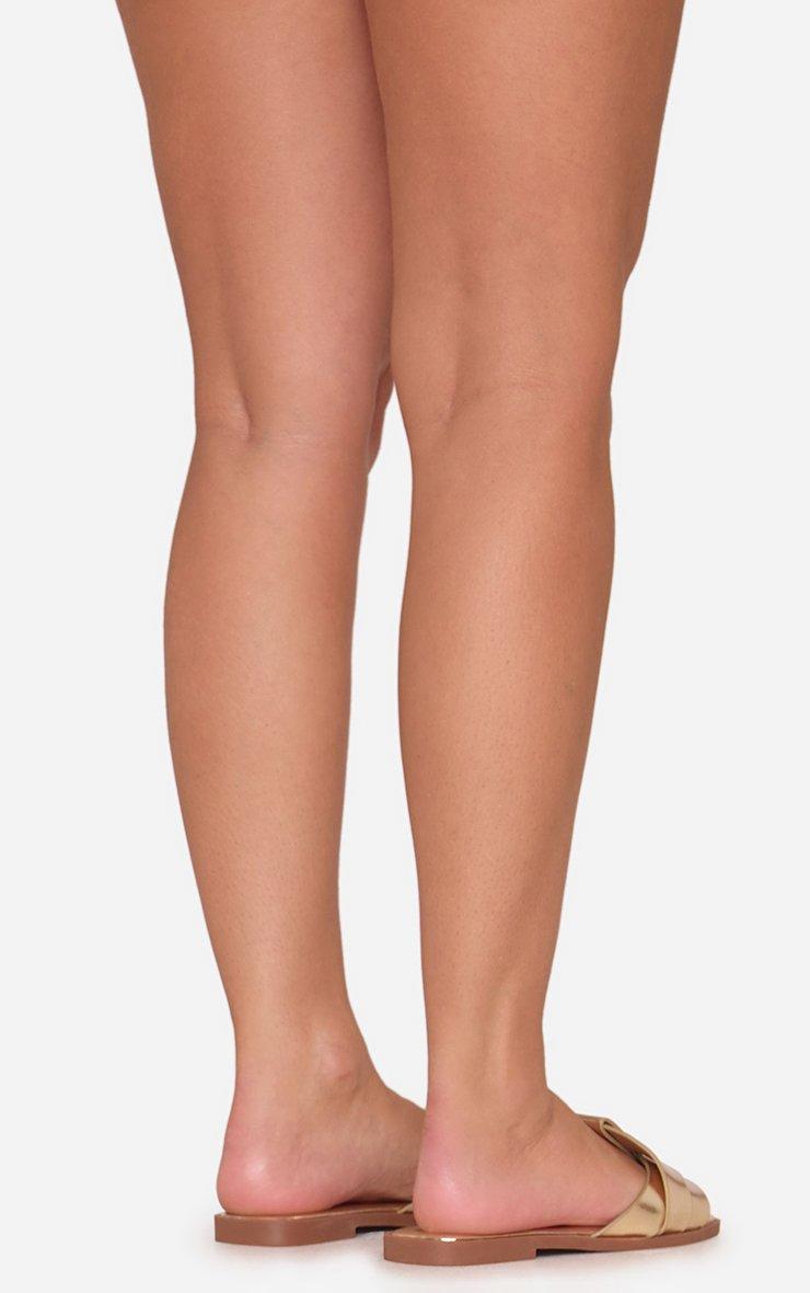 Nitro Woven Strap Detail Flat Slider Sandal In Gold Faux Leather